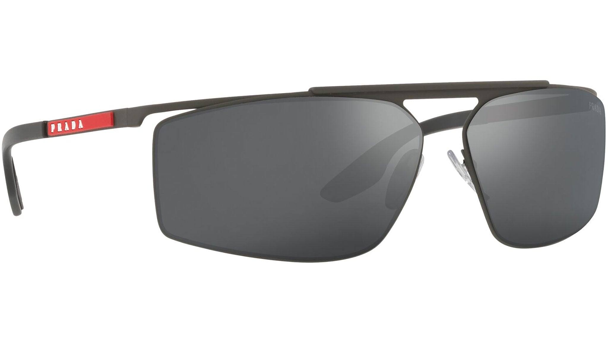 Prada Linea Rossa sunglasses model PS 51WS in the color variant UFK07G rubber gray with black mirror gray lenses. A perfect fusion of the concepts of sportswear and contemporary elegance: the Prada Linea Rossa sunglasses line expresses all the quality and artisanal refinement of the Prada fashion house in a modern casual style.