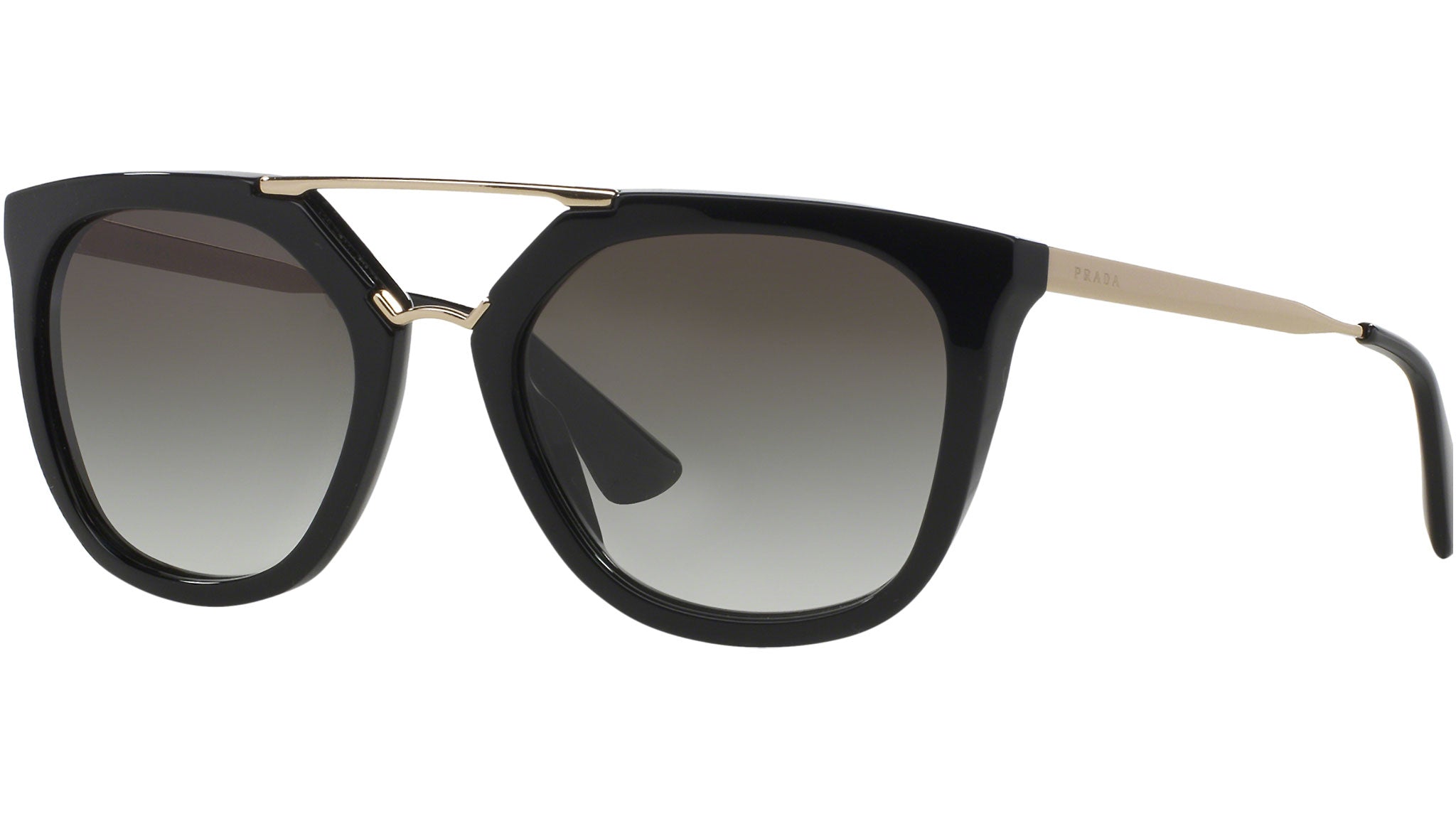 Prada sunglasses model PR 13QS, black frame variant, color code 1AB0A7 with gray gradient lens. Prada represents the best of Italian culture and tradition. It is one of the most innovative, prestigious and widely recognized brands in the fashion and luxury goods industries, with a keen attention to details and new trends.