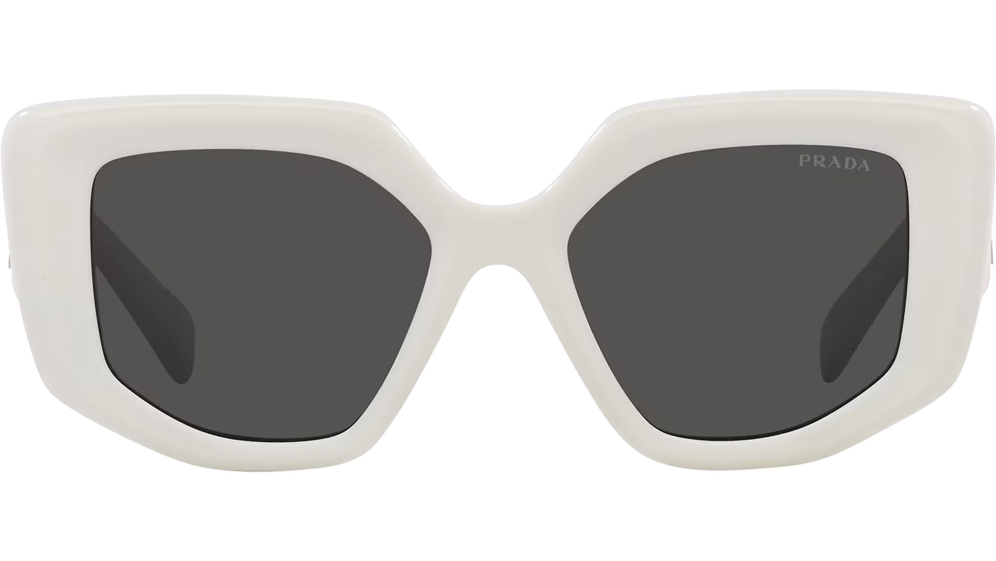 Prada sunglasses model PR14ZS color variant 1425S0 talc white, with dark gray lenses. Prada is one of the most representative brands of Italian fashion, an example of style, where culture and tradition blend together in one of the most innovative, prestigious and recognized brands in the world. The Prada sunglasses collections reflect great attention to detail and new trends, for an unmistakable style, without equal, of refined elegance and absolute quality.