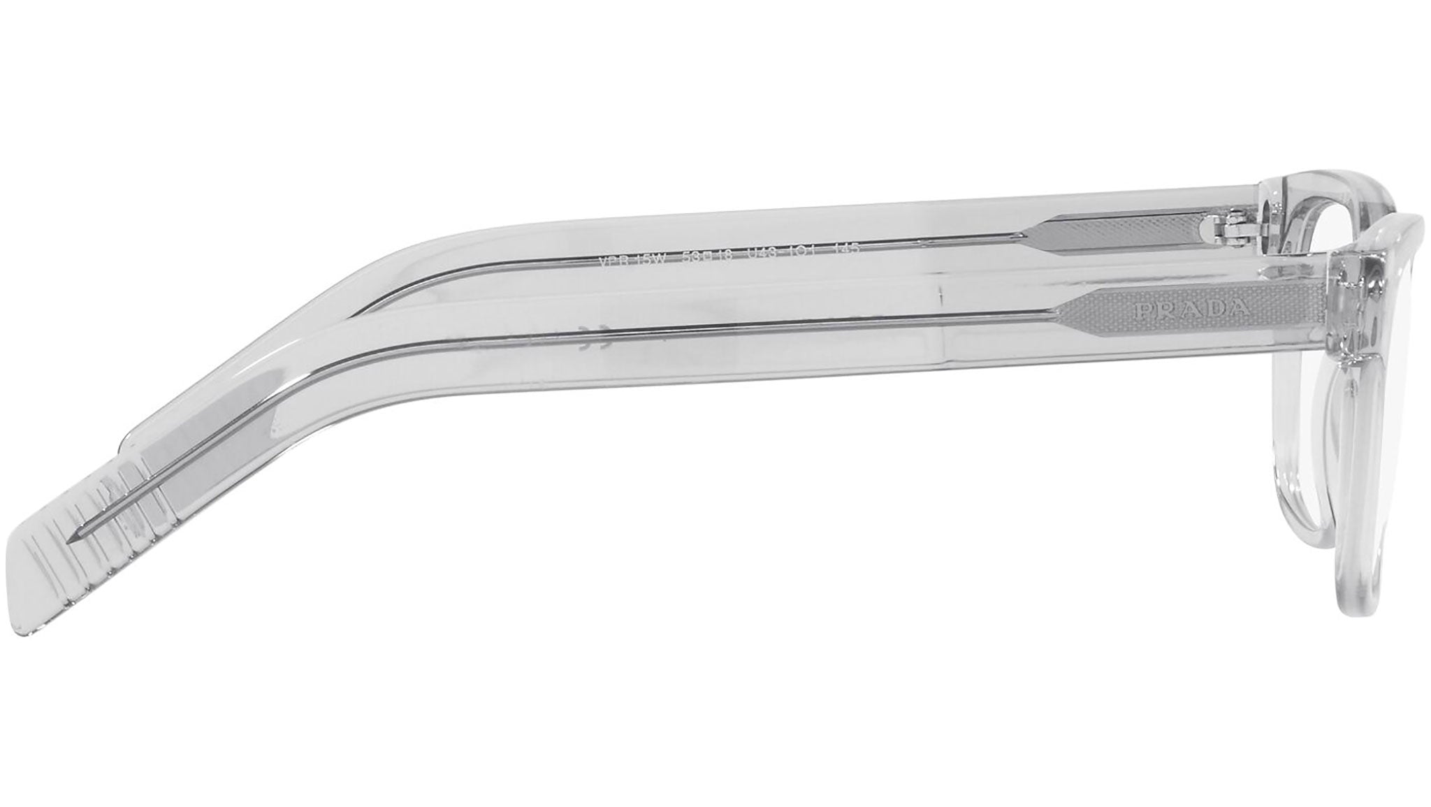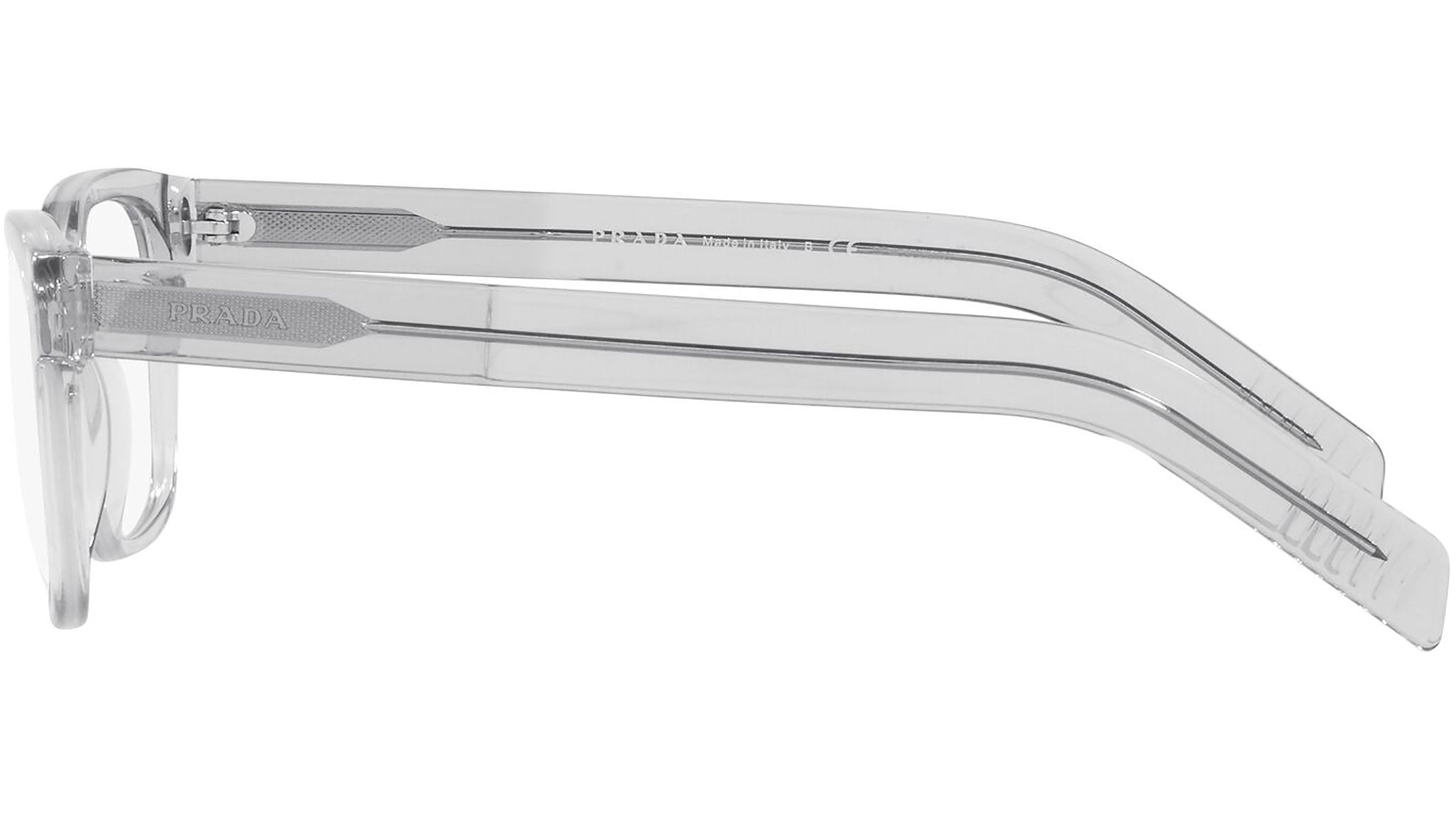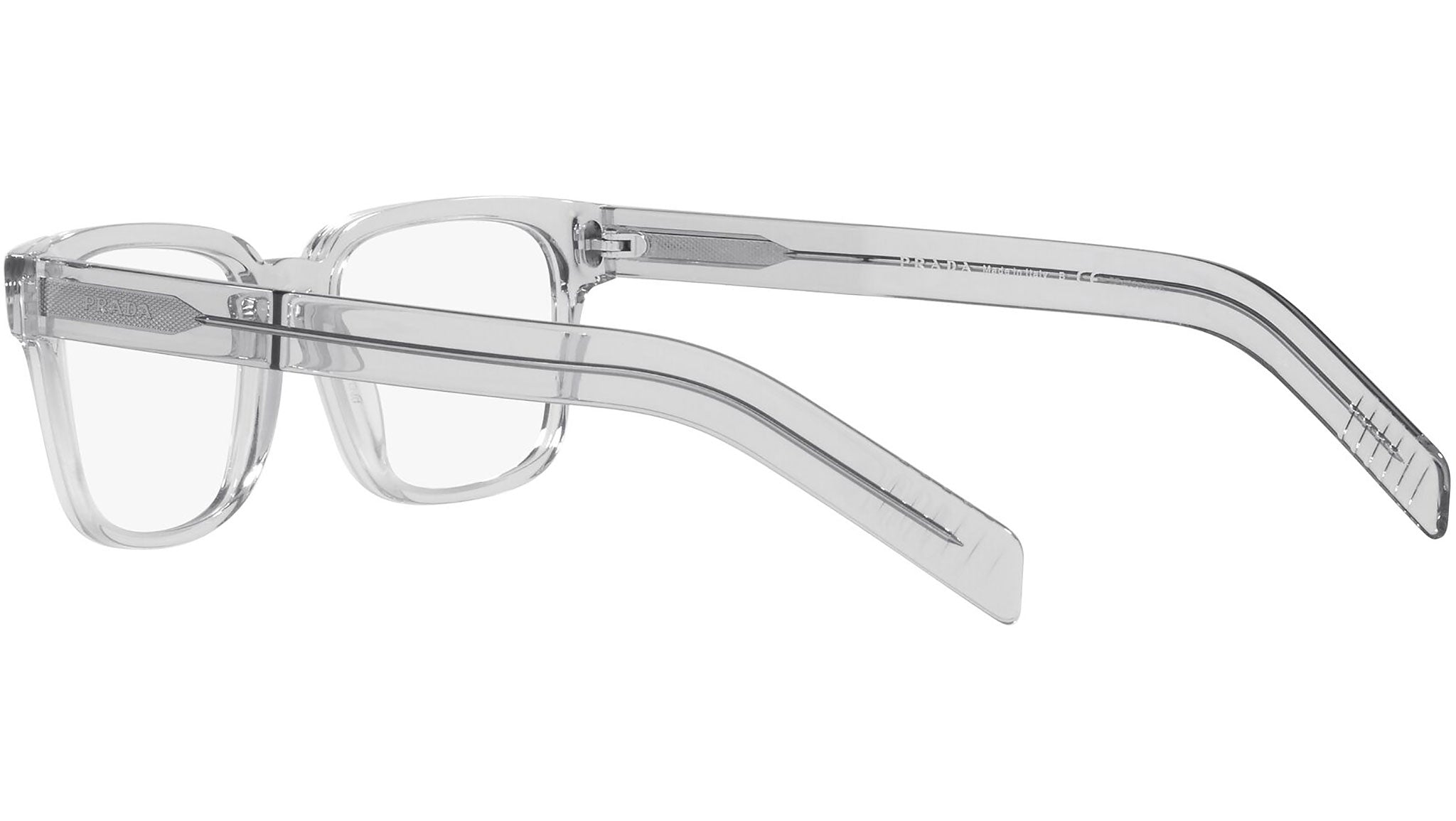 Prada eyeglasses model PR 15WV color variant crystal gray, color code U431O1. Prada represents the pinnacle of Italian tradition and fashion. It is one of the most innovative, prestigious and most recognized brands in the world of fashion and luxury accessories, the maximum expression of attention to detail, an emblem of style, in its refined interpretation of the new trends in international fashion.
