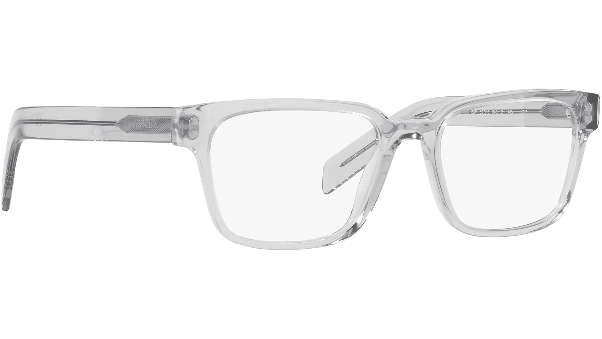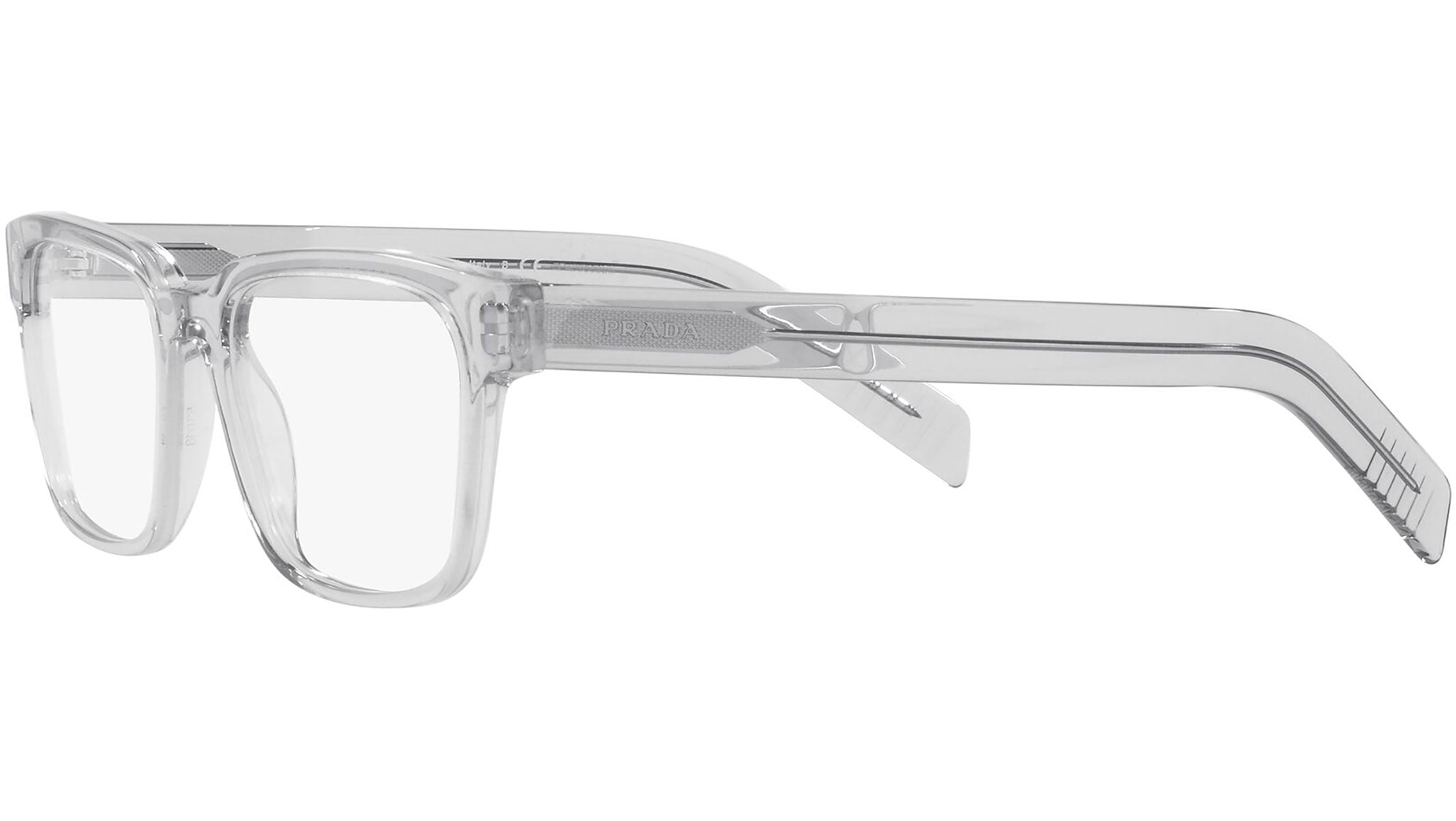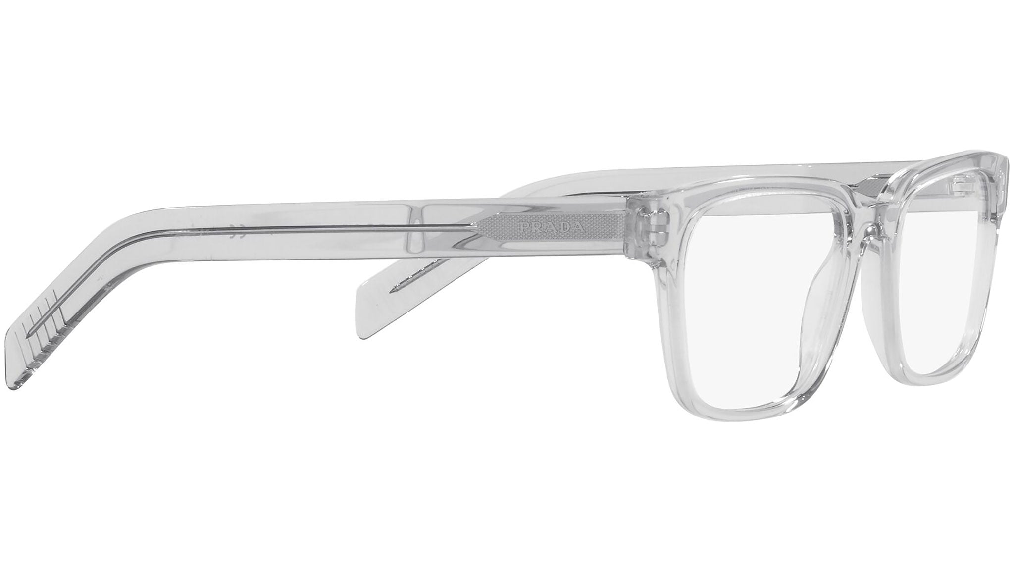 Prada eyeglasses model PR 15WV color variant crystal gray, color code U431O1. Prada represents the pinnacle of Italian tradition and fashion. It is one of the most innovative, prestigious and most recognized brands in the world of fashion and luxury accessories, the maximum expression of attention to detail, an emblem of style, in its refined interpretation of the new trends in international fashion.