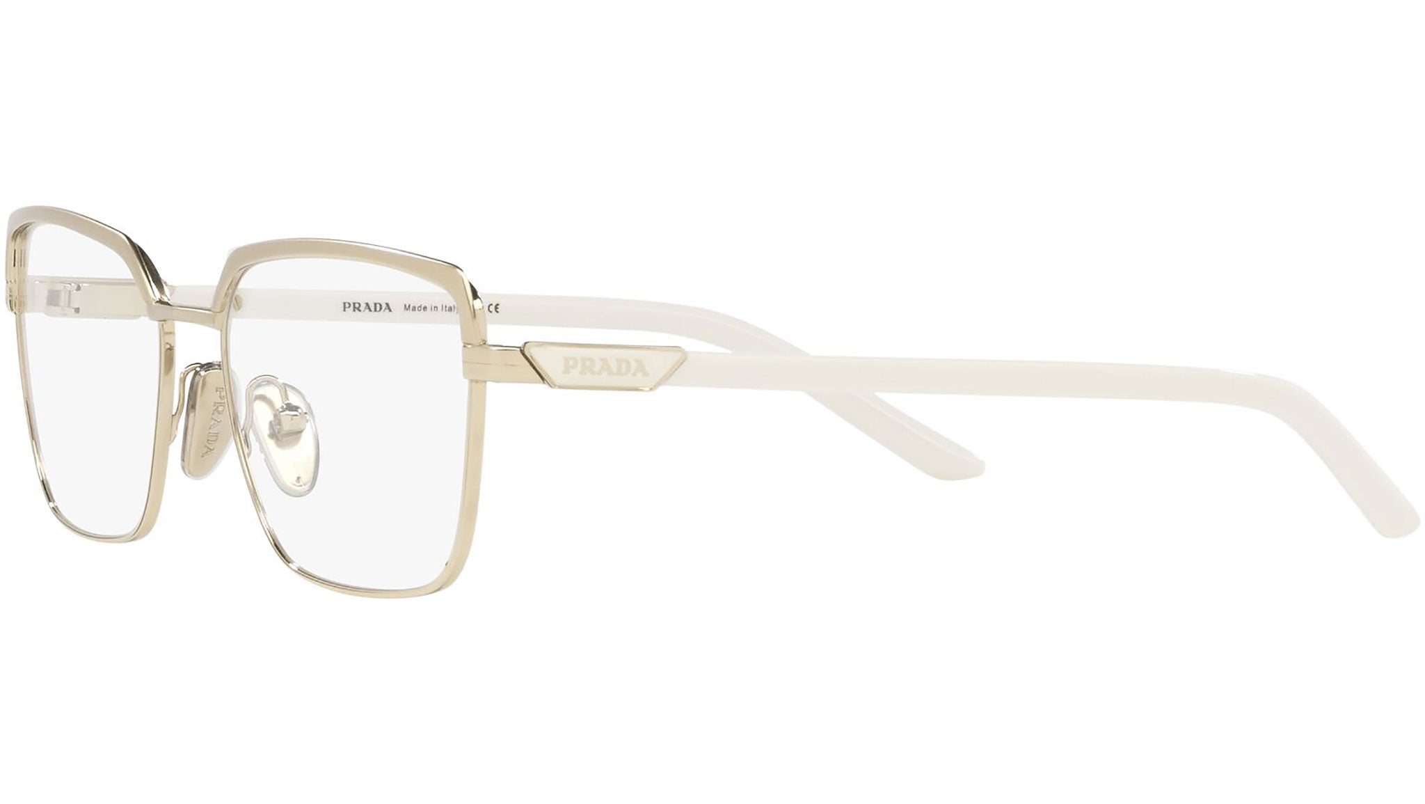 Prada eyeglasses model PR 56YV color variant matte pale gold / pale gold, color code ZVN1O1. Prada represents the pinnacle of Italian tradition and fashion. It is one of the most innovative, prestigious and most recognized brands in the world of fashion and luxury accessories, the maximum expression of attention to detail, an emblem of style, in its refined interpretation of the new trends in international fashion.