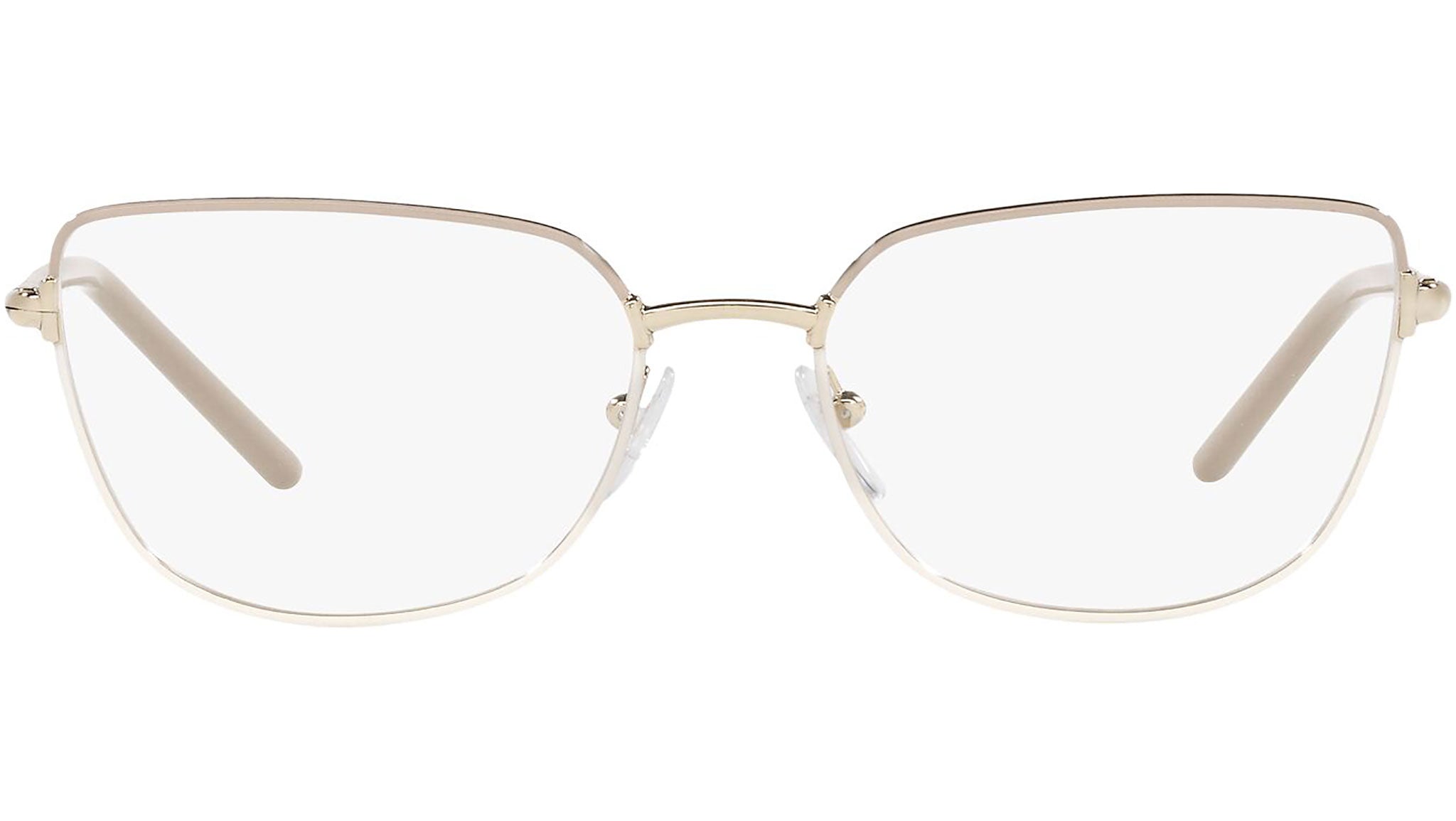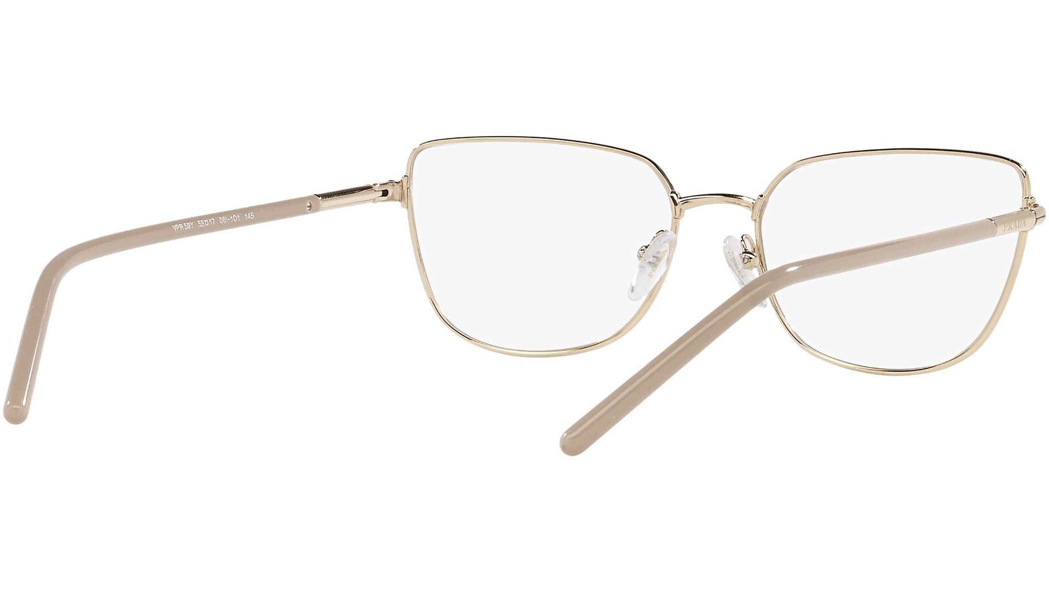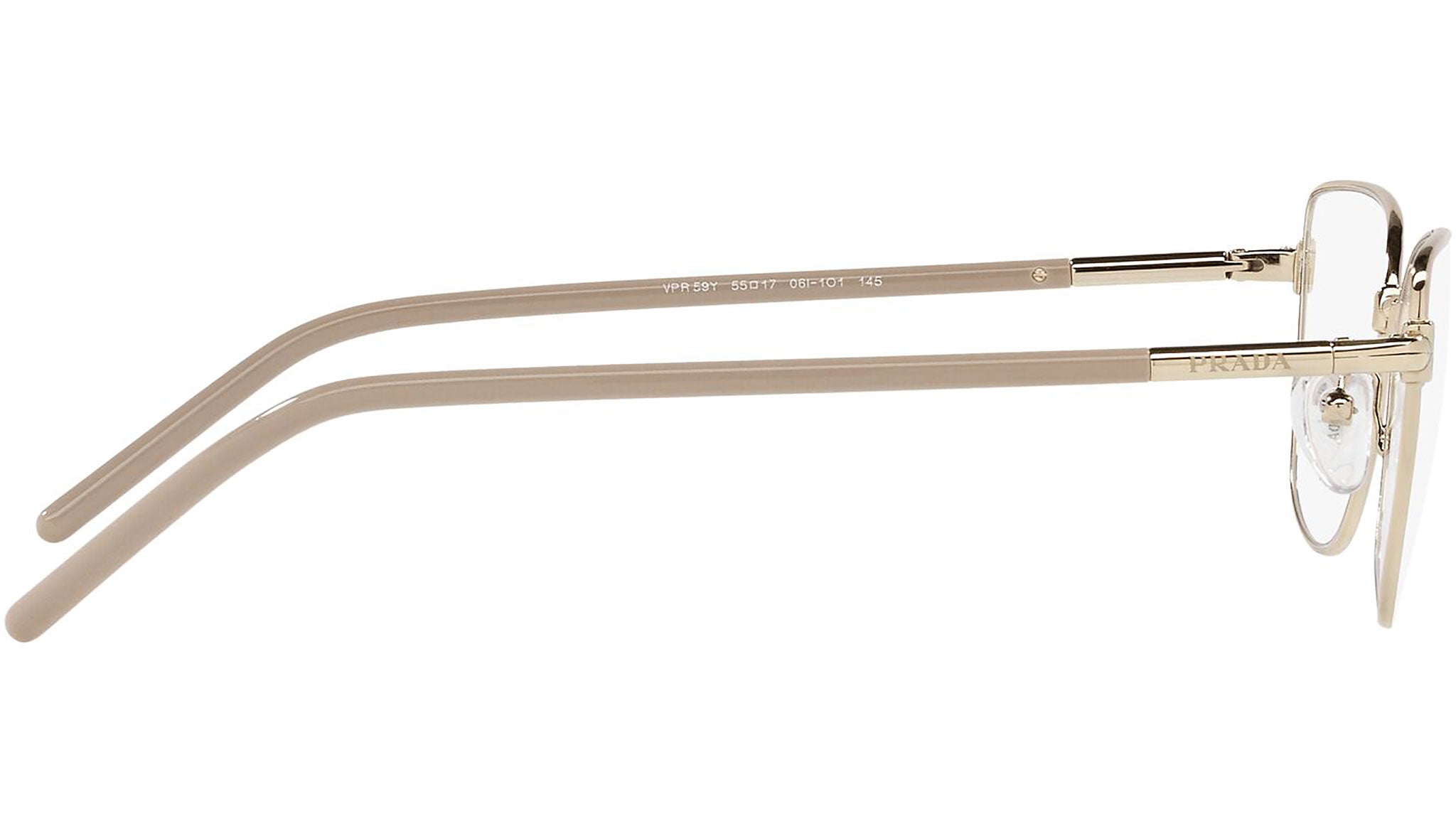 Prada eyeglasses model PR 59YV color variant beige and white, color code 06I1O1. Prada represents the pinnacle of Italian tradition and fashion. It is one of the most innovative, prestigious and most recognized brands in the world of fashion and luxury accessories, the maximum expression of attention to detail, an emblem of style, in its refined interpretation of the new trends in international fashion.