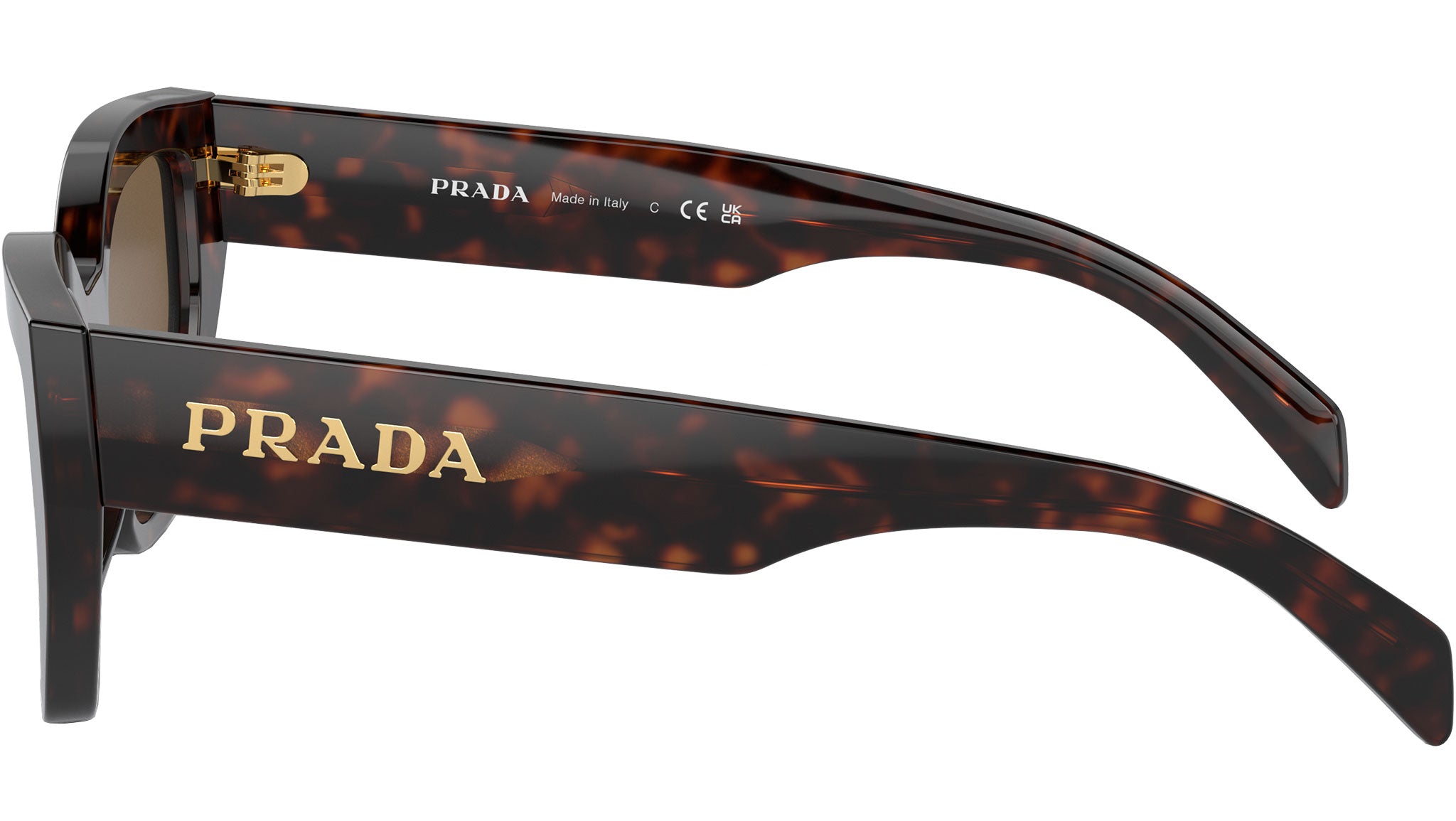Prada women's sunglasses model A09S with full rim briar tortoise frame in acetate and dark brown base 4 lenses. High bridge fit. Line: Signature. Brand code: PRA09S. Color code: 16N5Y1. Authorized Prada dealer. Each Prada product is delivered with an original case and accessories and is covered by a 12-month manufacturer's warranty.