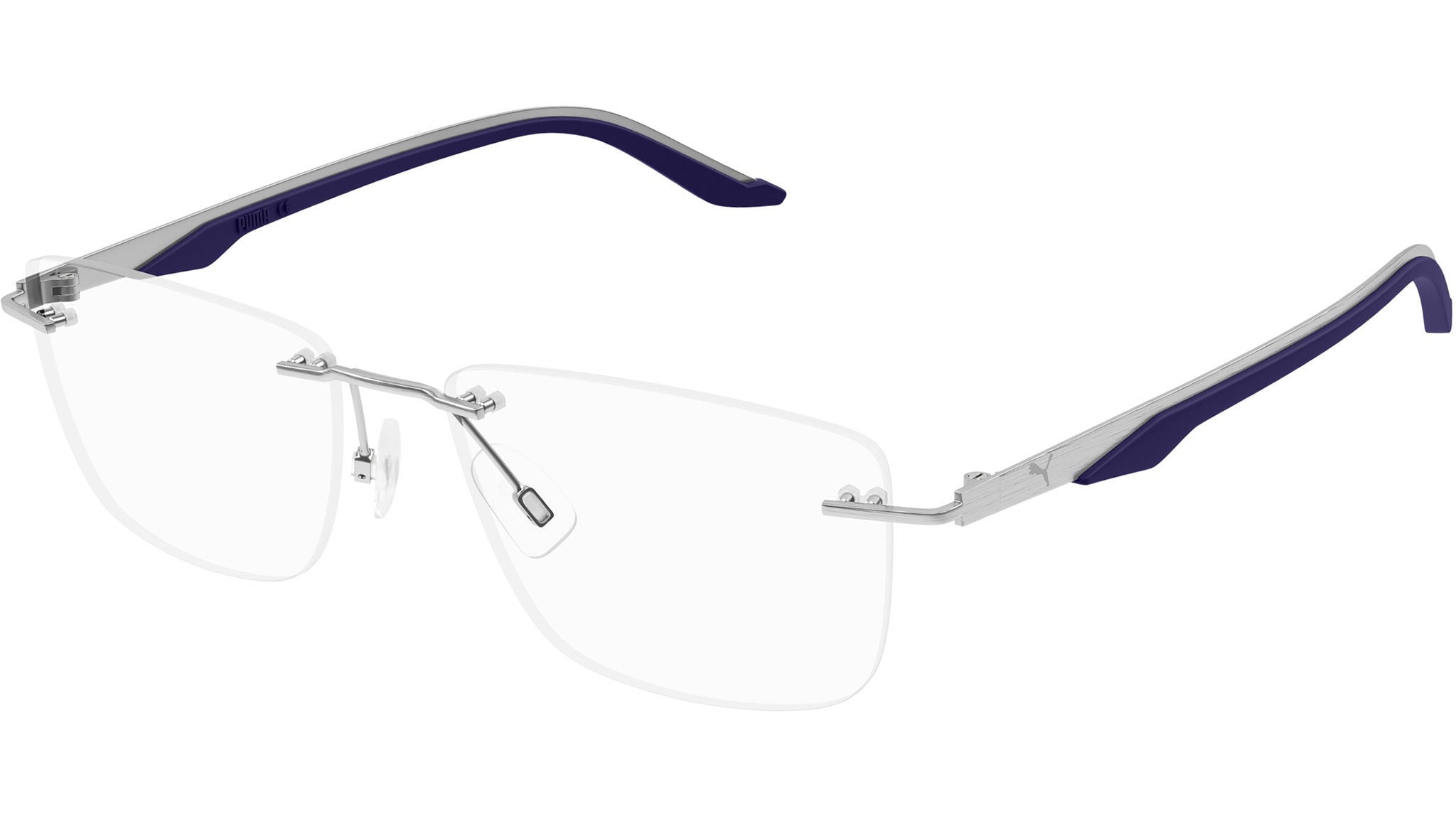 Puma Tech eyeglasses model PU0455O color variant 003 dark ruthenium semi-matte light brushed with demo lenses. Authorized Puma online dealer. The glasses are delivered with original case and accessories and are covered by the official 12-month manufacturer's warranty.