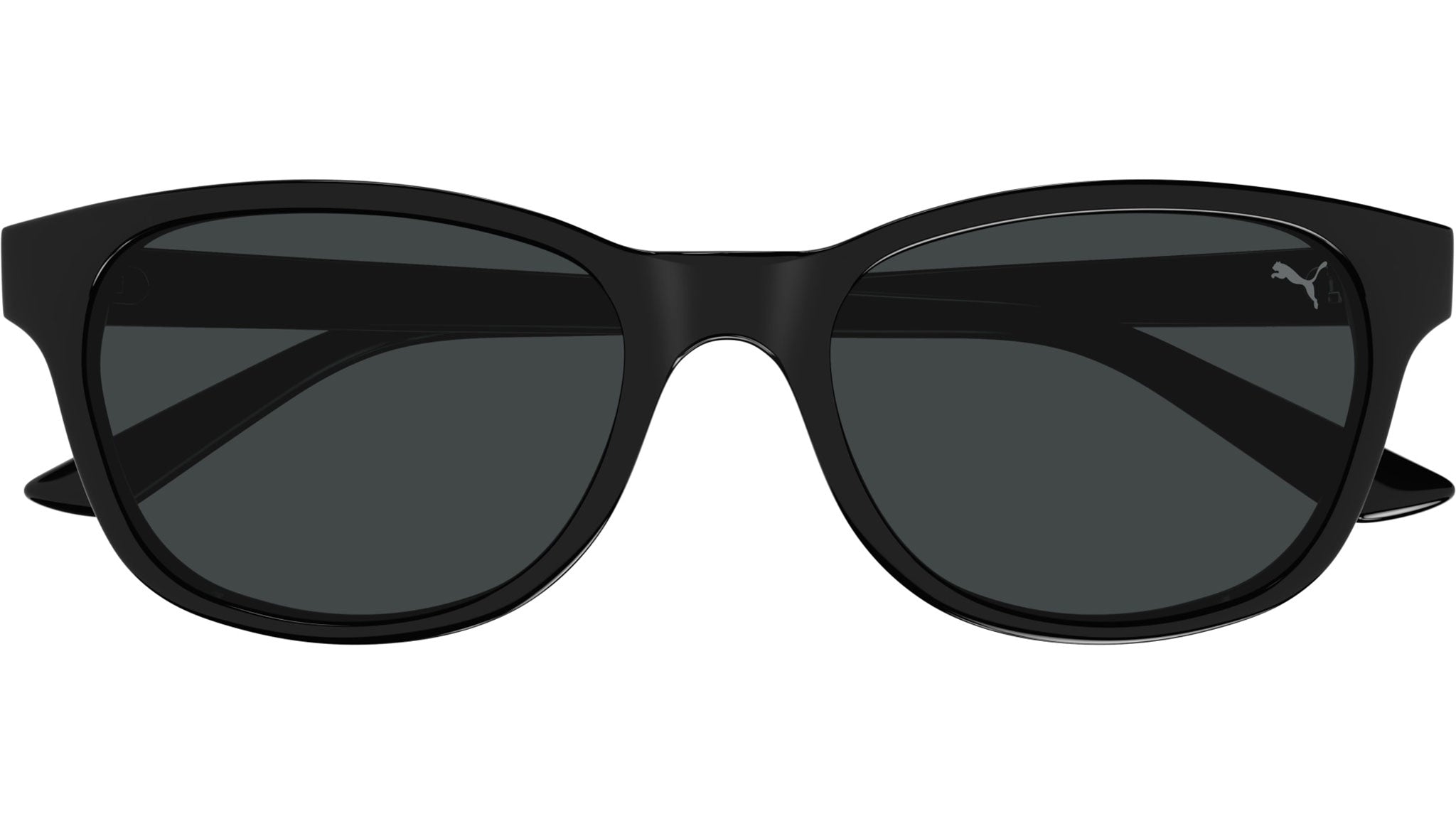 Puma Essential sunglasses model PU0468S color variant 001 shiny black with solid color smoke gray lenses. Authorized Puma online dealer. The glasses are delivered with original case and accessories and are covered by the official 12-month manufacturer's warranty.