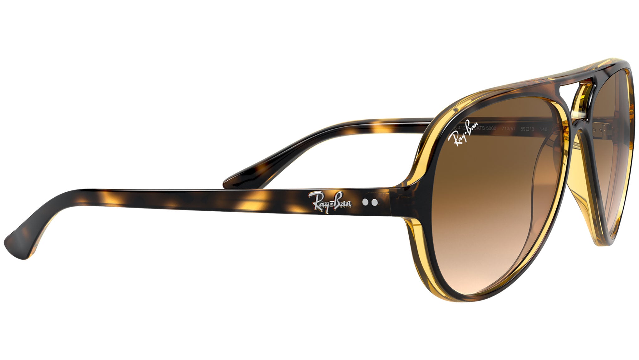 Ray-Ban Cats 5000 Classic sunglasses feature a reinterpretation of the iconic Aviator into a lightweight propionate plastic frame material. These sunglasses offer a similar aviator look and style, yet are completely unique and unmatchable. Cats 5000 Classic RB4125 sunglasses represent everything that is timeless, bold and unparalled in the Ray-Ban collection. Pick from a variety of frame colors as well as lens treatments such as polarized, crystal brown gradient, crystal gray gradient and crystal green. These sunglasses offer optimal comfort and 100% UV protection to keep you safe and glare-free.