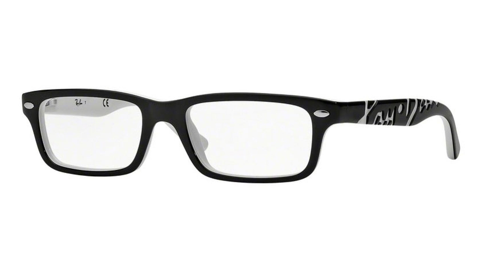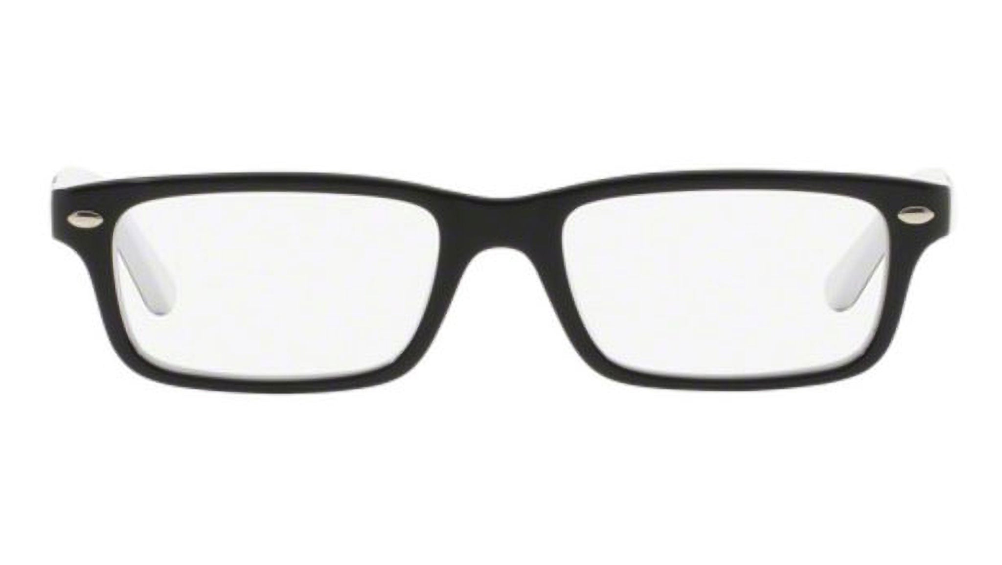 Ray-Ban Kids RY1535 black on white acetate eyeglasses color code 3579. Unisex rectangular full rim shape with demo lenses. With original case and warranty. Authorized Ray-Ban dealer.