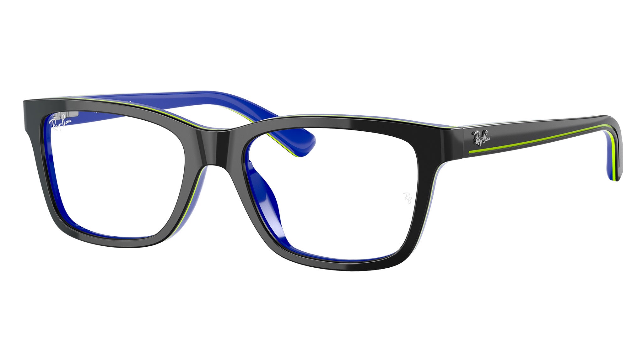 Ray-Ban Kids RY1536 dark grey on blue acetate eyeglasses color code 3600. Unisex square full rim shape with demo lenses. With original case and warranty. Ray-Ban authorized dealer.