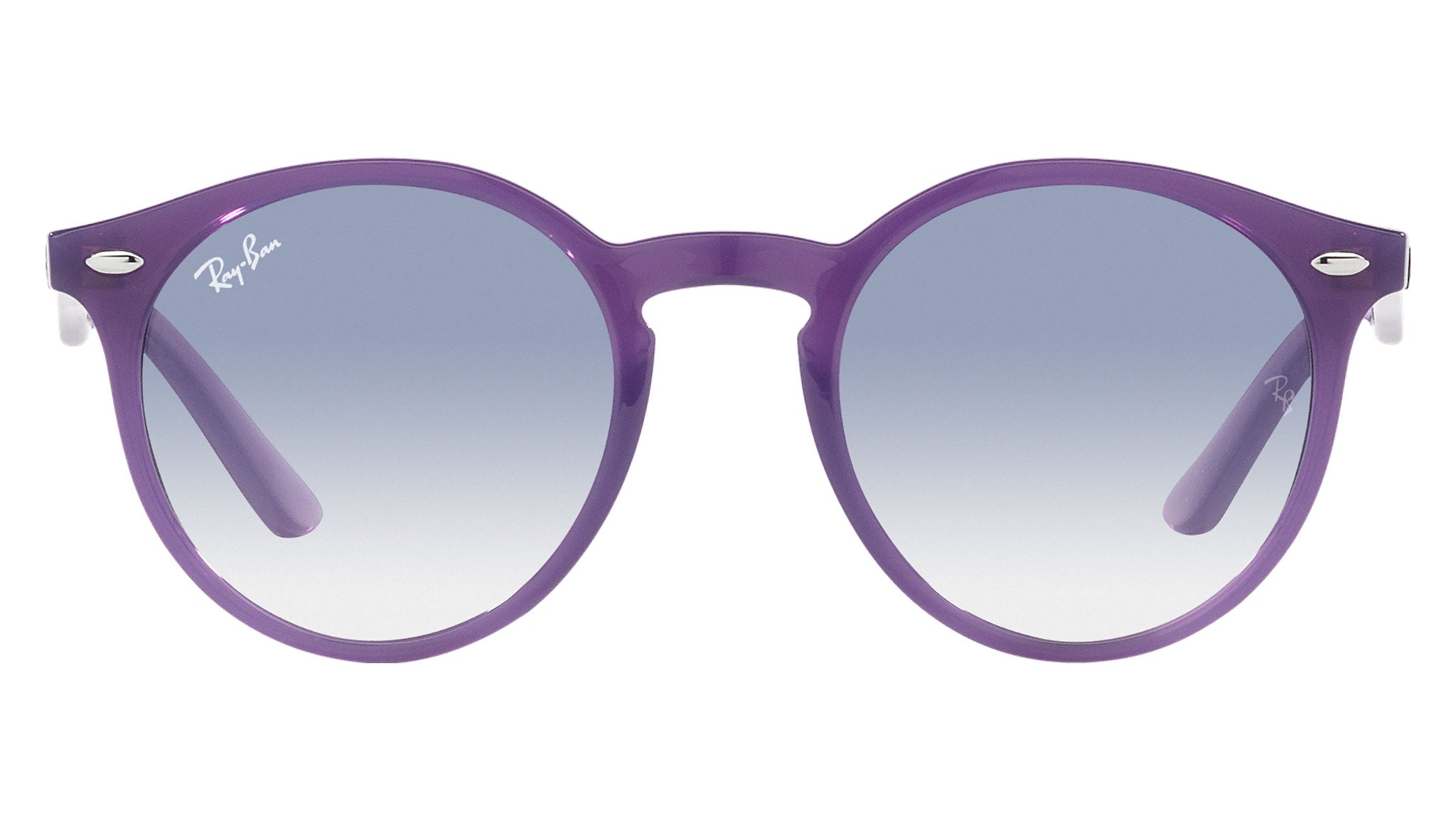 Ray-Ban Kids RJ9064S sunglasses in injected color code 713119 opal purple. Unisex full rim panto shape with blue lenses. With original case and warranty. Ray-Ban authorized dealer.