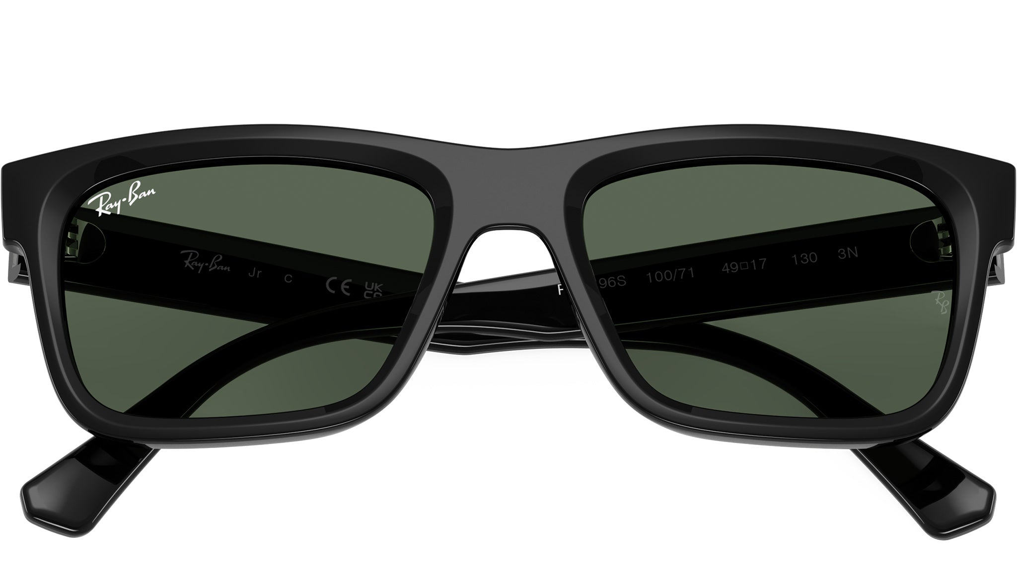Occhiali da sole Ray-Ban Junior RJ9196S 100/71 unisex con montatura rettangolare in iniettato nero e lenti in bio poliammide color verde scuro. Vestibilità a ponte alto. Linea: Kids Icons. Codice modello: 0RJ9196S. Codice colore: 100/71. Rivenditore autorizzato Ray-Ban online. Gli occhiali vengono consegnati con custodia e accessori originali e sono coperti dalla garanzia ufficiale di 12 mesi del produttore.