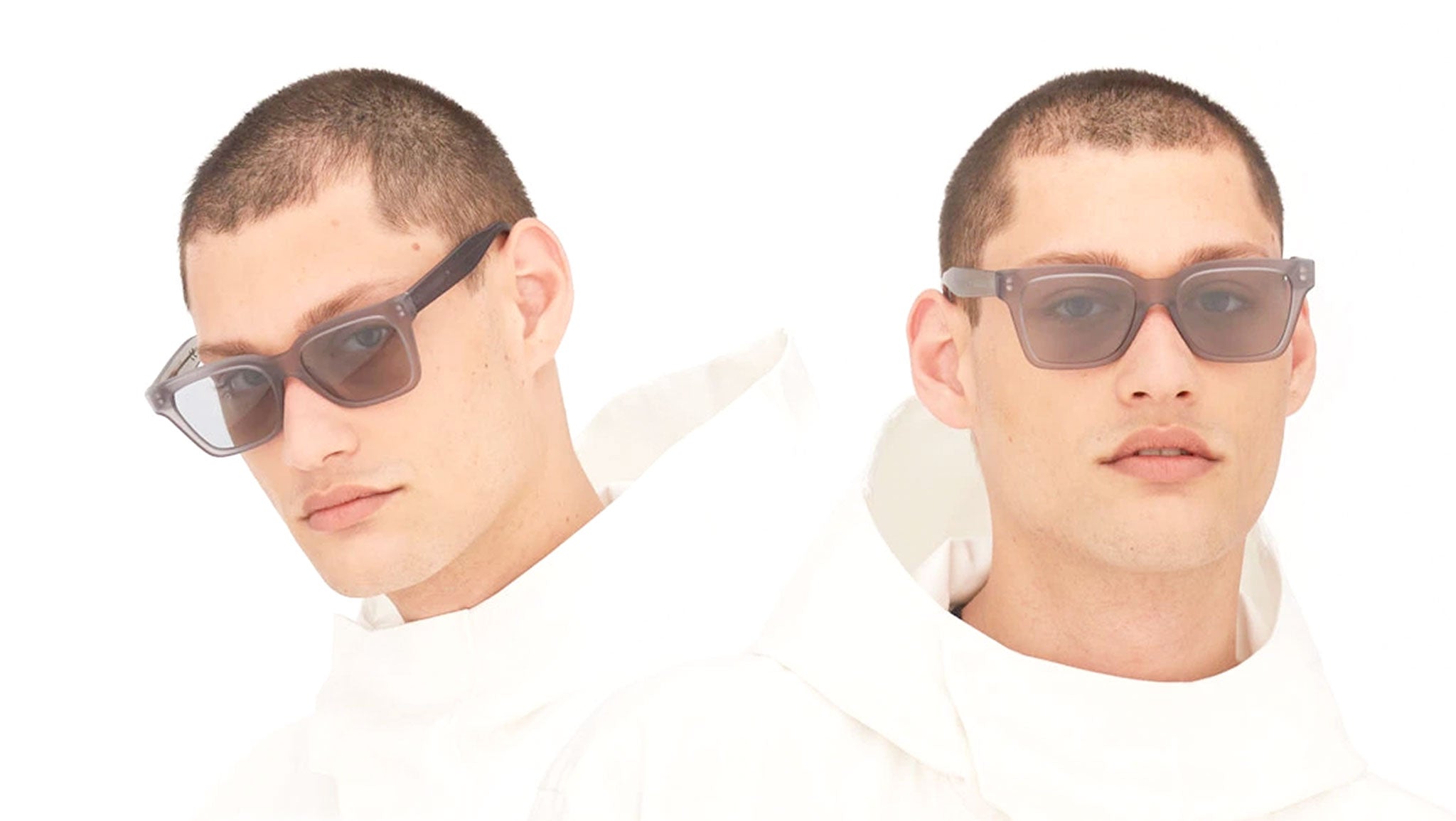 America is an angular, geometric design featuring chunky temple tips, a low profile and chunky temples. With a nod to classic, timeless vintage frames, America features wide rectangular lenses and a low bridge. A clean, contemporary silhouette inspired by a uncompromising sensitivity and street, in transparent gray acetate with gray lenses. The package contains the semi-rigid case and a cleaning cloth.