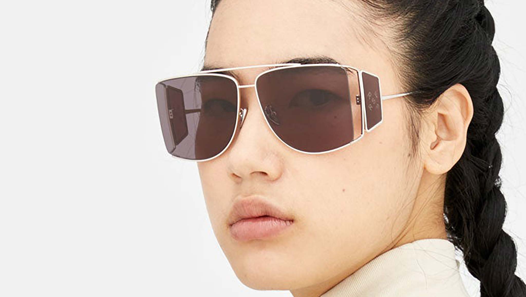 A forward-looking shape, Autore reinvents the classic design of aviator-style frames, adding a whole new dimension with an emphasis on both wearability and cutting-edge style. An all-metal frame, Author is characterized by a double nose-bridge and light metal rims. The model features a unique lens shape, with a straight edge on the outer line. Oversized metal rims keep the lenses tightly in place, while leaving the edges exposed for a unique, edgy statement. This version features gun-metal rims and faded black lenses. Sizes: R Lens Width: 63 mm. Frame Front: 146mm. Frame Side: 140mm. Product Code Size R: BS5