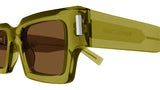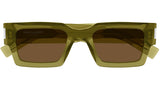 Saint Laurent sunglasses model SL 572 Classic line in recycled acetate rectangular shape color code 008 transparent acid green with solid brown lenses. Authorized Saint Laurent online dealer. The glasses are delivered with original case and accessories and are covered by the official 12-month manufacturer's warranty.