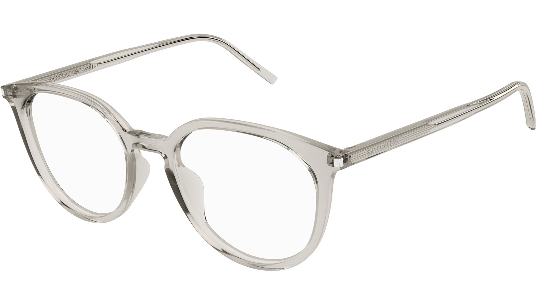 Saint Laurent eyeglasses model SL 681/F Classic line color code 003 transparent beige shiny in recycled acetate panthos shape with beige temples.