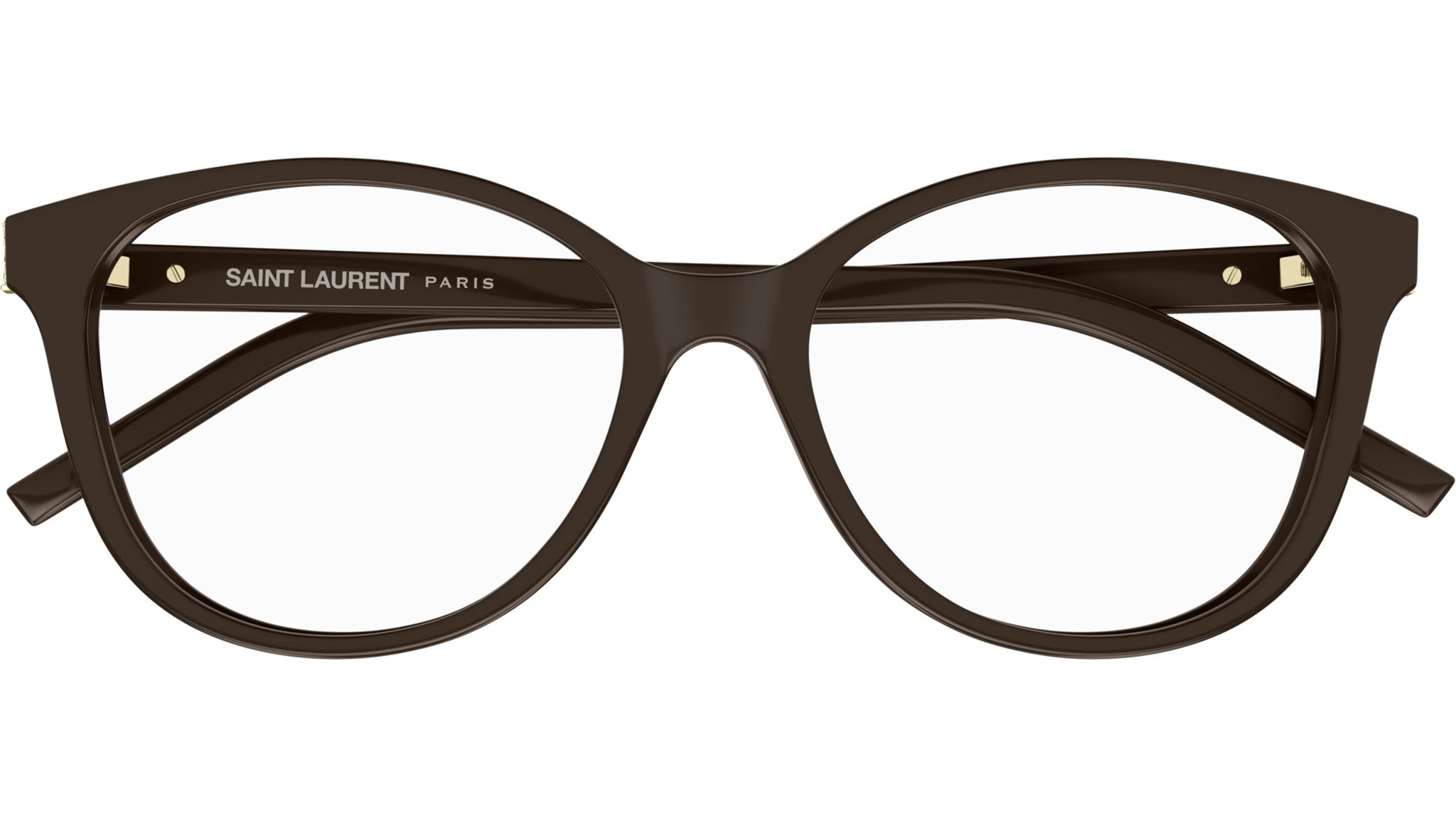 Saint Laurent eyeglasses model SL M112 Monogram line in acetate panto shape color code 007 shiny dark brown solid color with brown temples. Authorized Saint Laurent online dealer. The glasses are delivered with original case and accessories and are covered by the official 12-month manufacturer's warranty.