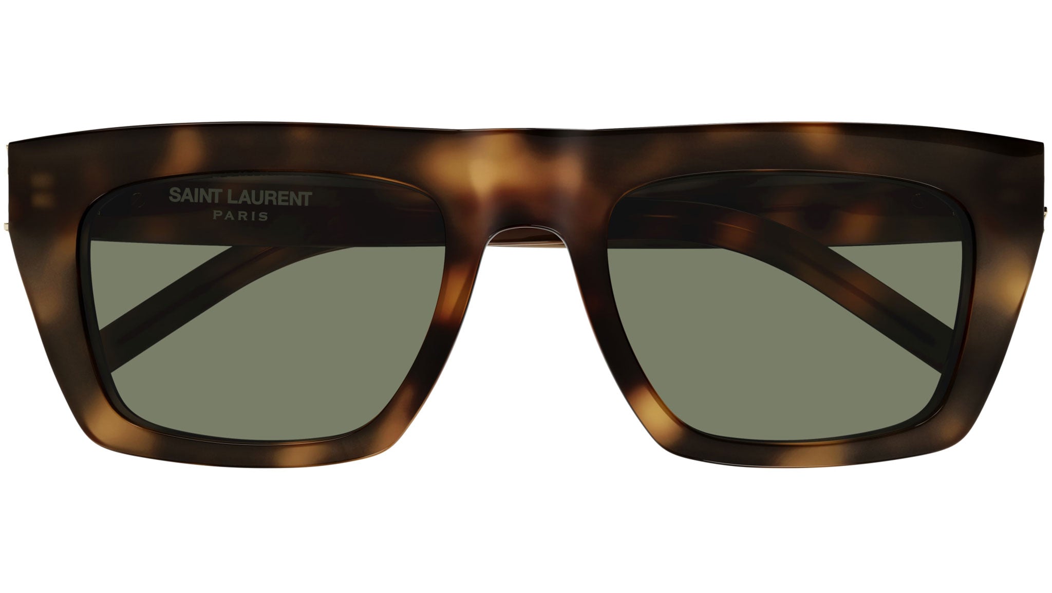Saint Laurent sunglasses model SL M131 Classic line color code 003 medium shiny havana in recycled acetate, rectangle shape with solid green lenses.