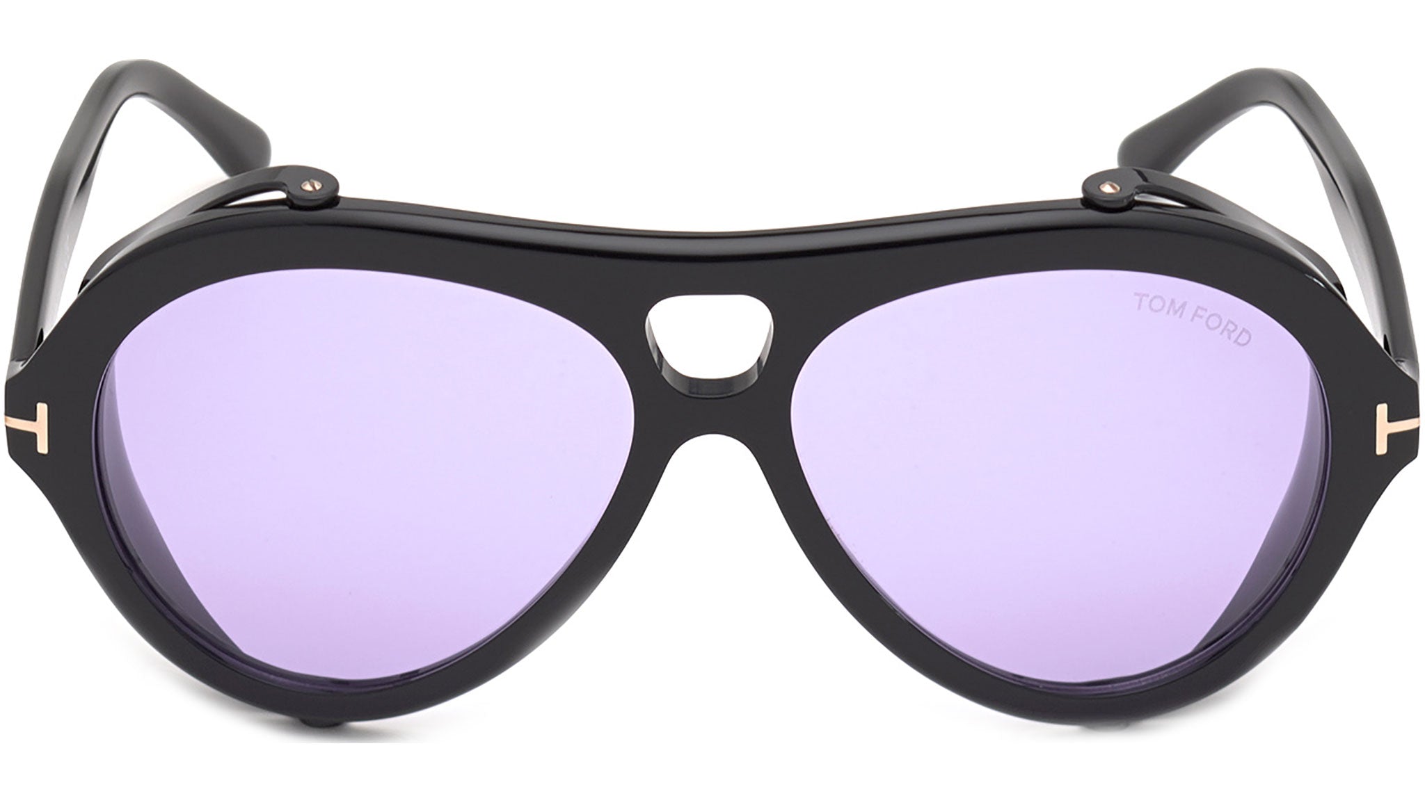 Tom Ford Neughman sunglasses code FT0882 01Y with shiny black frame and purple lenses.