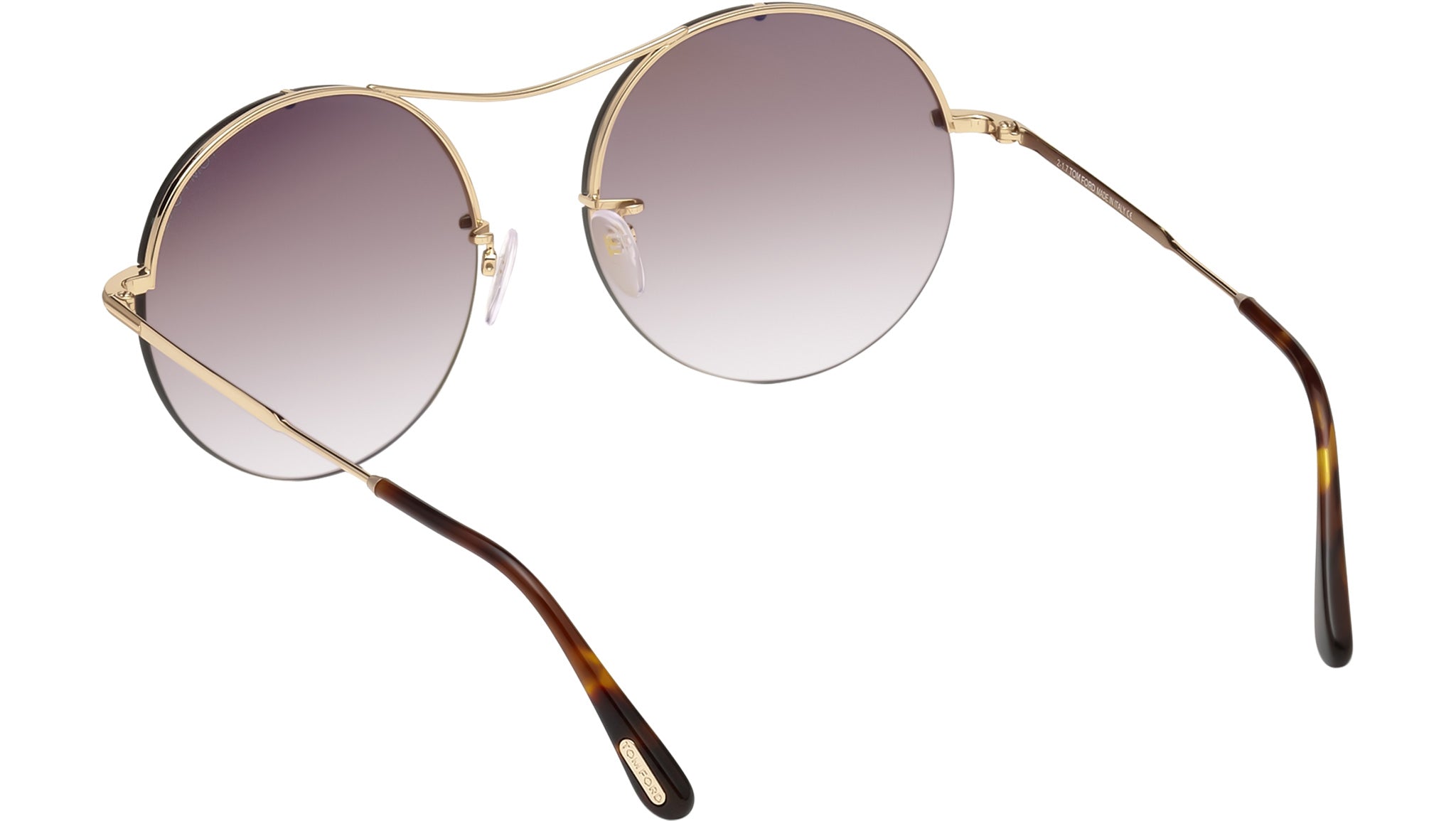 Tom Ford Veronique-02 FT0565 unisex sunglasses in shiny gold metal with brown gradient lenses. Brand code: 0565. Color code: 28F. Authorized Tom Ford online dealer. The glasses come with the original case and accessories and are covered by a standard 12-month manufacturer's warranty.