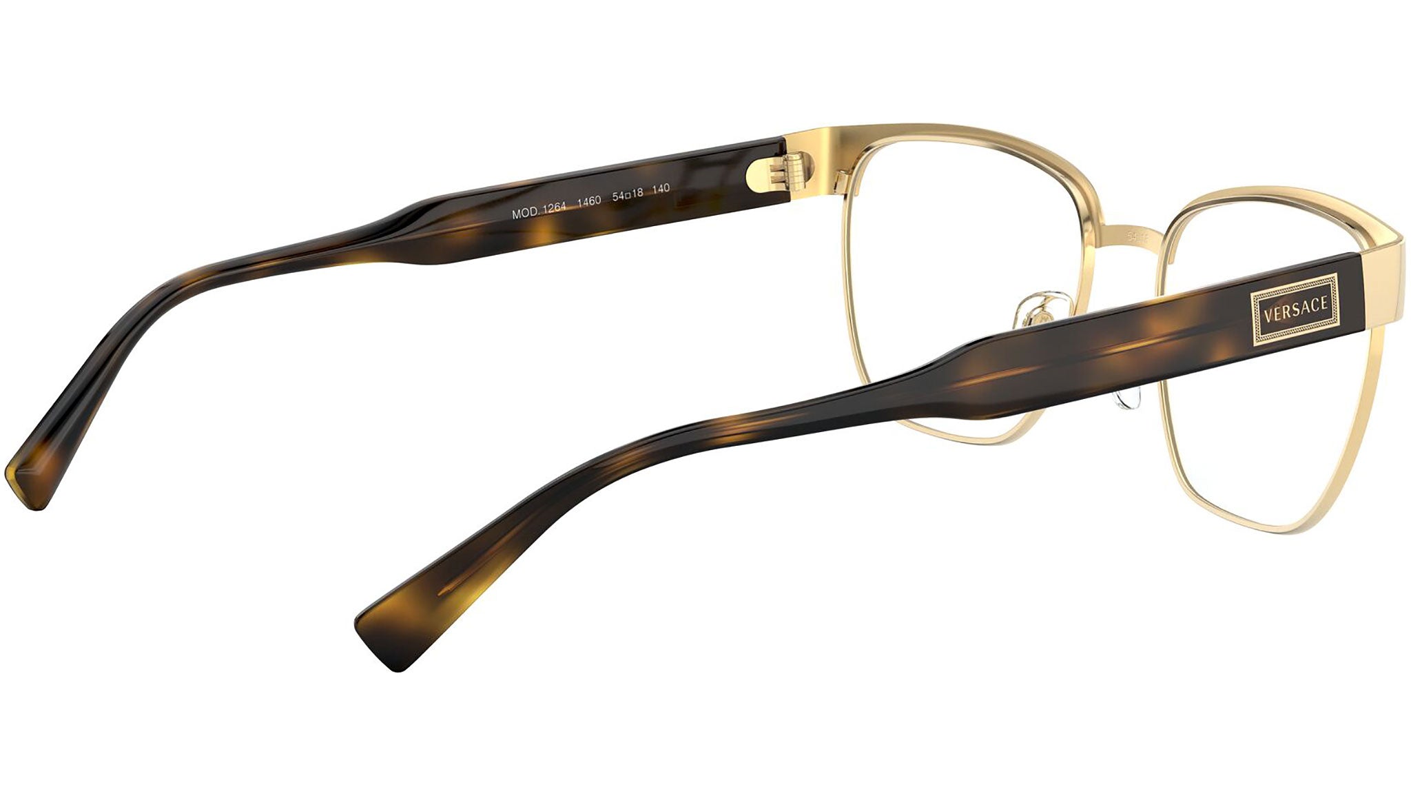 Versace eyeglasses model VE1264 color variant gold, color code 1460. Dedicated to those who want a contemporary, sexy, sophisticated style with a strong personality, Versace is one of the most iconic and famous high fashion and luxury houses in the world. The eyewear collection combines technical innovation and the essential style of the brand, and is strongly characterized by the decorative elements that have always distinguished the Maison.