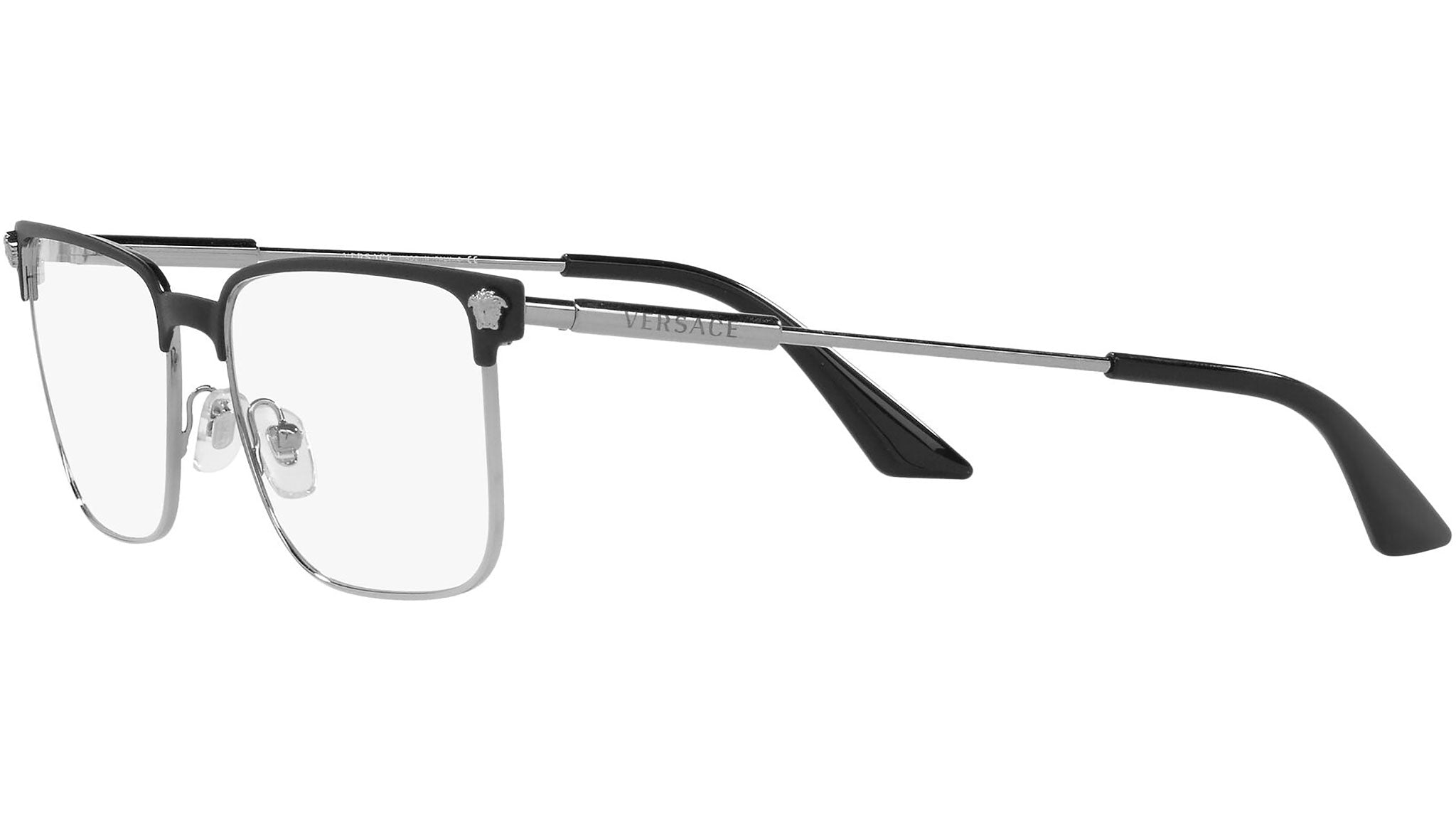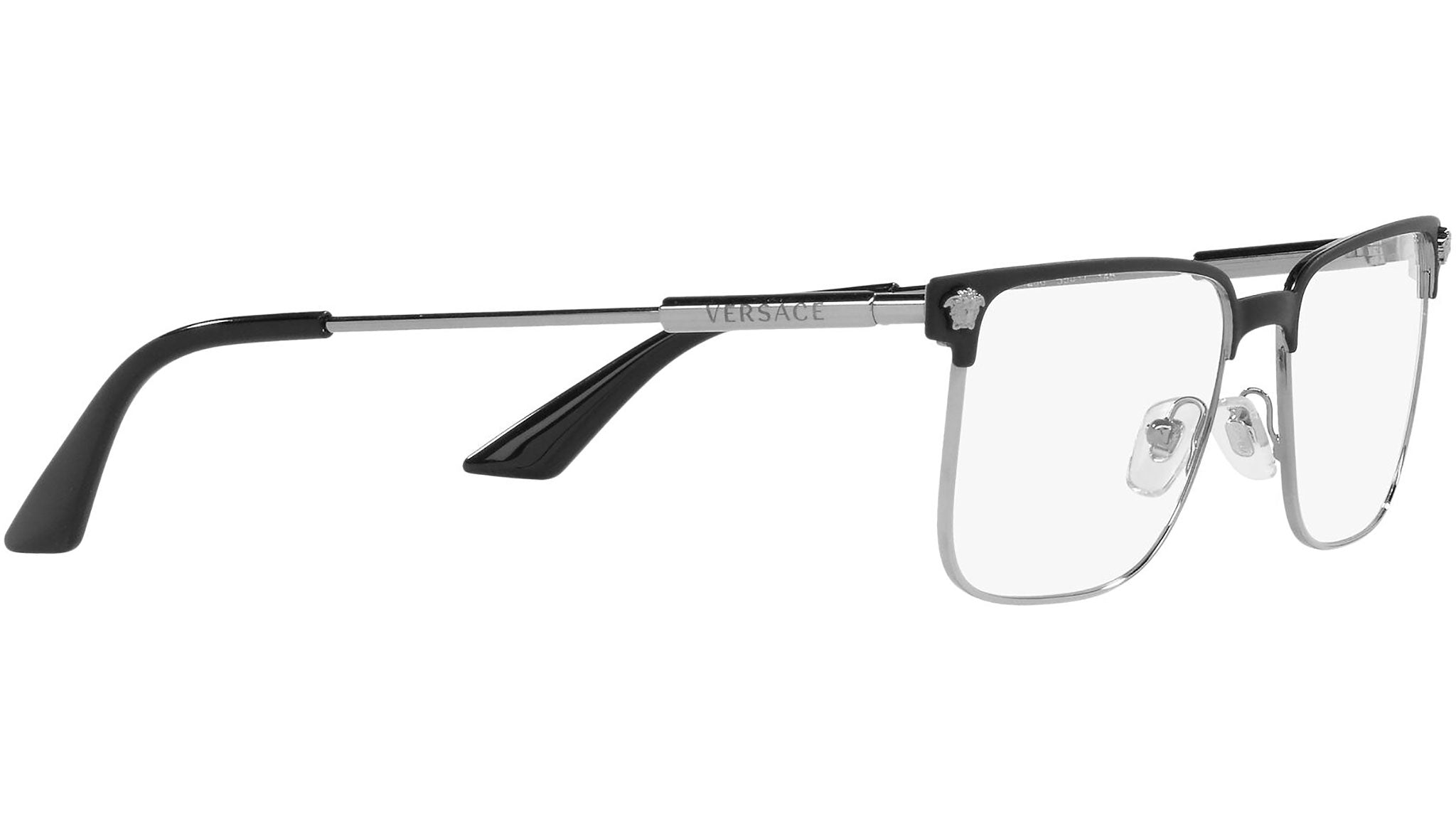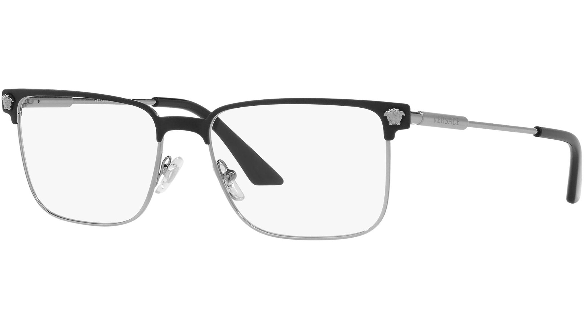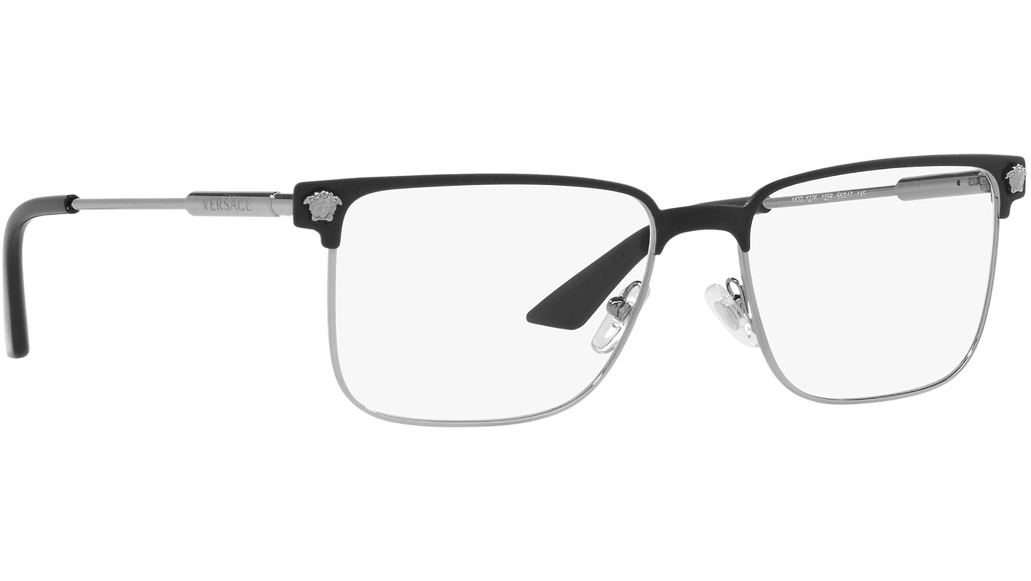 Versace eyeglasses model VE1276 color variant 1256 matt black and gunmetal. Dedicated to those who want a contemporary, sexy, sophisticated style with a strong personality, Versace is one of the most iconic and famous high fashion and luxury houses in the world. The eyewear collection combines technical innovation and the essential style of the brand, and is strongly characterized by the decorative elements that have always distinguished the Maison.