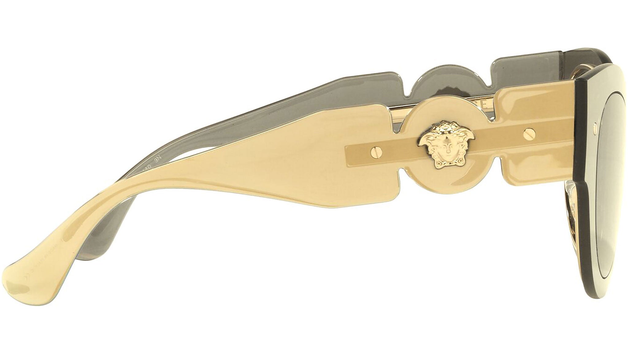 Versace sunglasses model VE2234 color code 1002/3 transparent brown gold mirror with brown lenses. Dedicated to those who want a contemporary, sexy, sophisticated style with a strong personality, Versace is one of the most iconic and famous high fashion and luxury houses in the world. The sunglasses collection combines technical innovation and the essential style of the brand, and is strongly characterized by the decorative elements that have always distinguished the Maison.