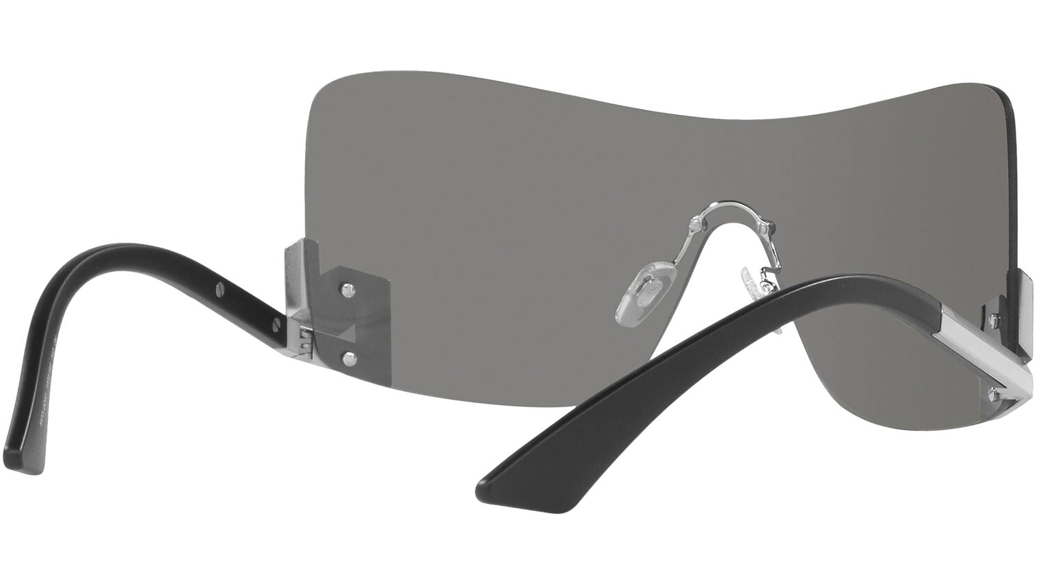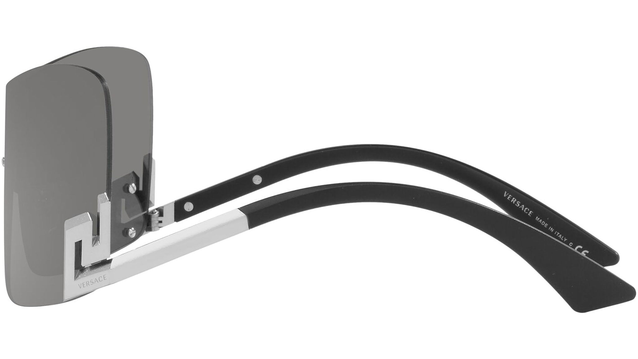 Versace sunglasses model VE2240 color code 10006G silver mirror with light gray silver mirror lenses. Dedicated to those who want a contemporary, sexy, sophisticated style with a strong personality, Versace is one of the most iconic and famous high fashion and luxury houses in the world. The sunglasses collection combines technical innovation and the essential style of the brand, and is strongly characterized by the decorative elements that have always distinguished the Maison.