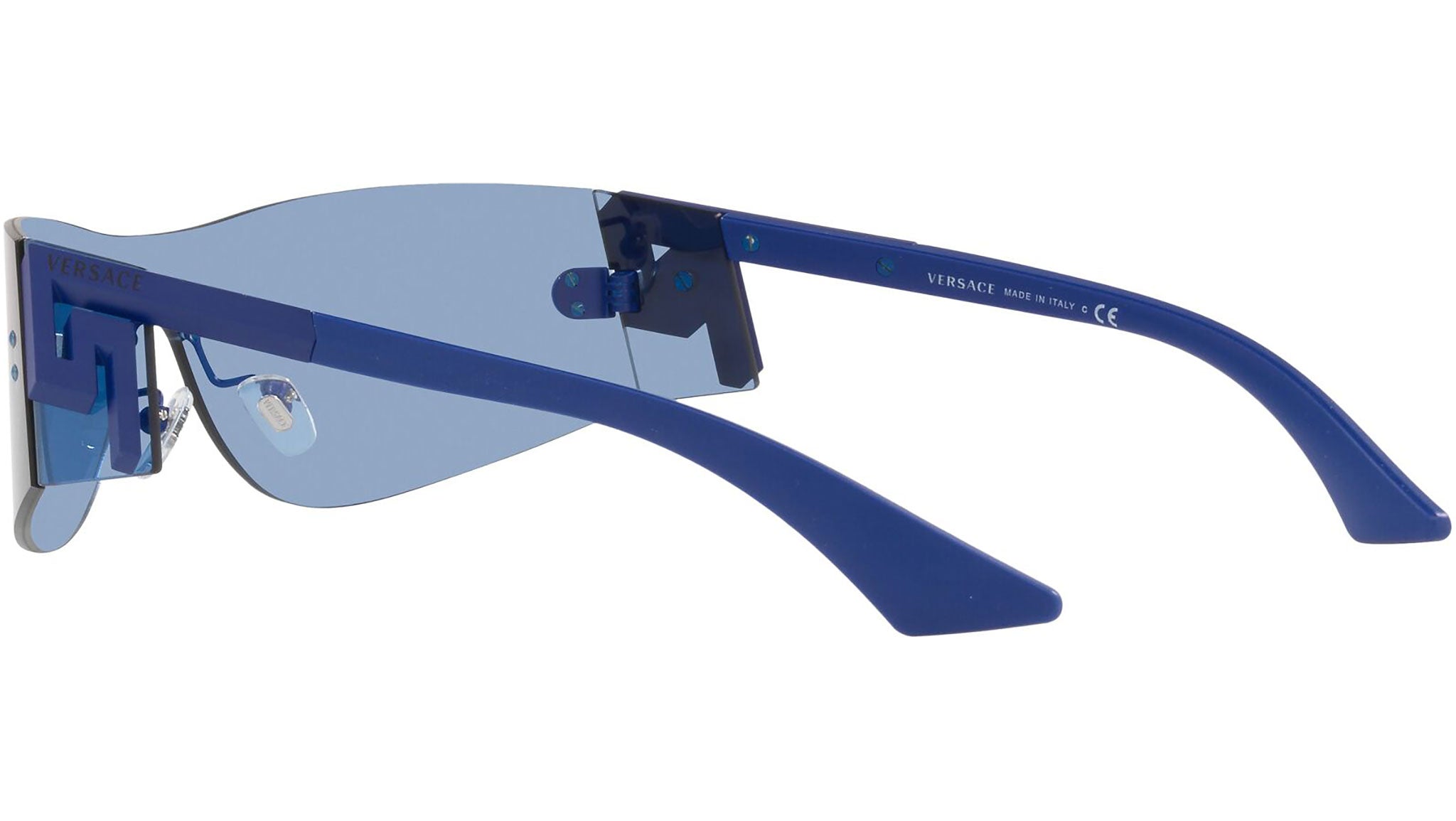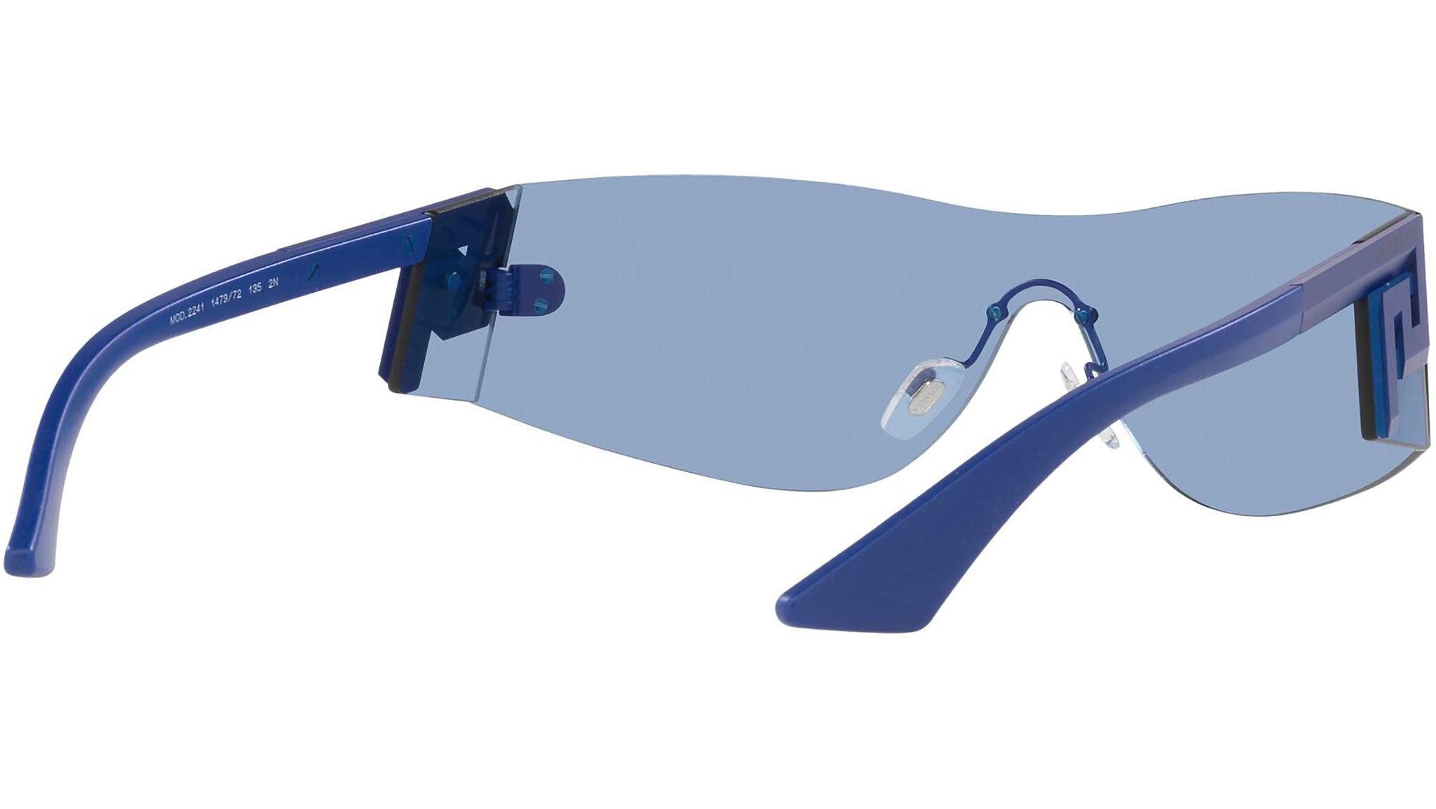 Versace sunglasses model VE2241 color code 147972 blue with light blue lenses. Dedicated to those who want a contemporary, sexy, sophisticated style with a strong personality, Versace is one of the most iconic and famous high fashion and luxury houses in the world. The sunglasses collection combines technical innovation and the essential style of the brand, and is strongly characterized by the decorative elements that have always distinguished the Maison.