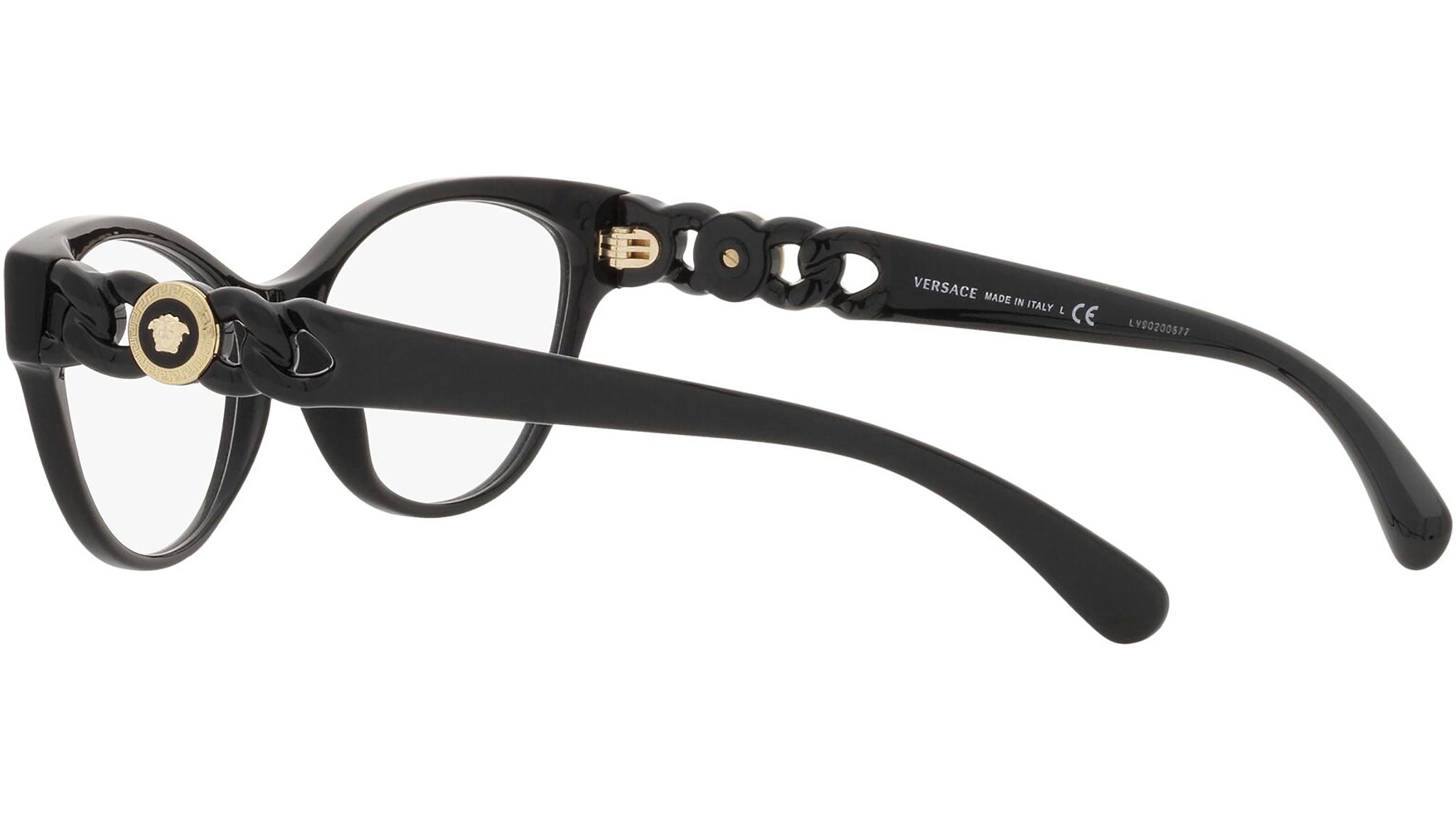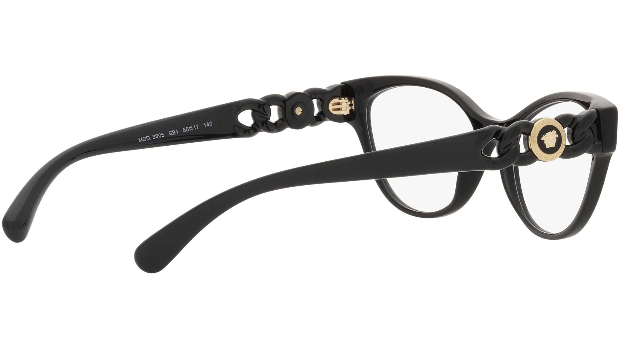 Versace eyeglasses model VE3305 color variant GB1 black. Dedicated to those who want a contemporary, sexy, sophisticated style with a strong personality, Versace is one of the most iconic and famous high fashion and luxury houses in the world. The eyewear collection combines technical innovation and the essential style of the brand, and is strongly characterized by the decorative elements that have always distinguished the Maison.