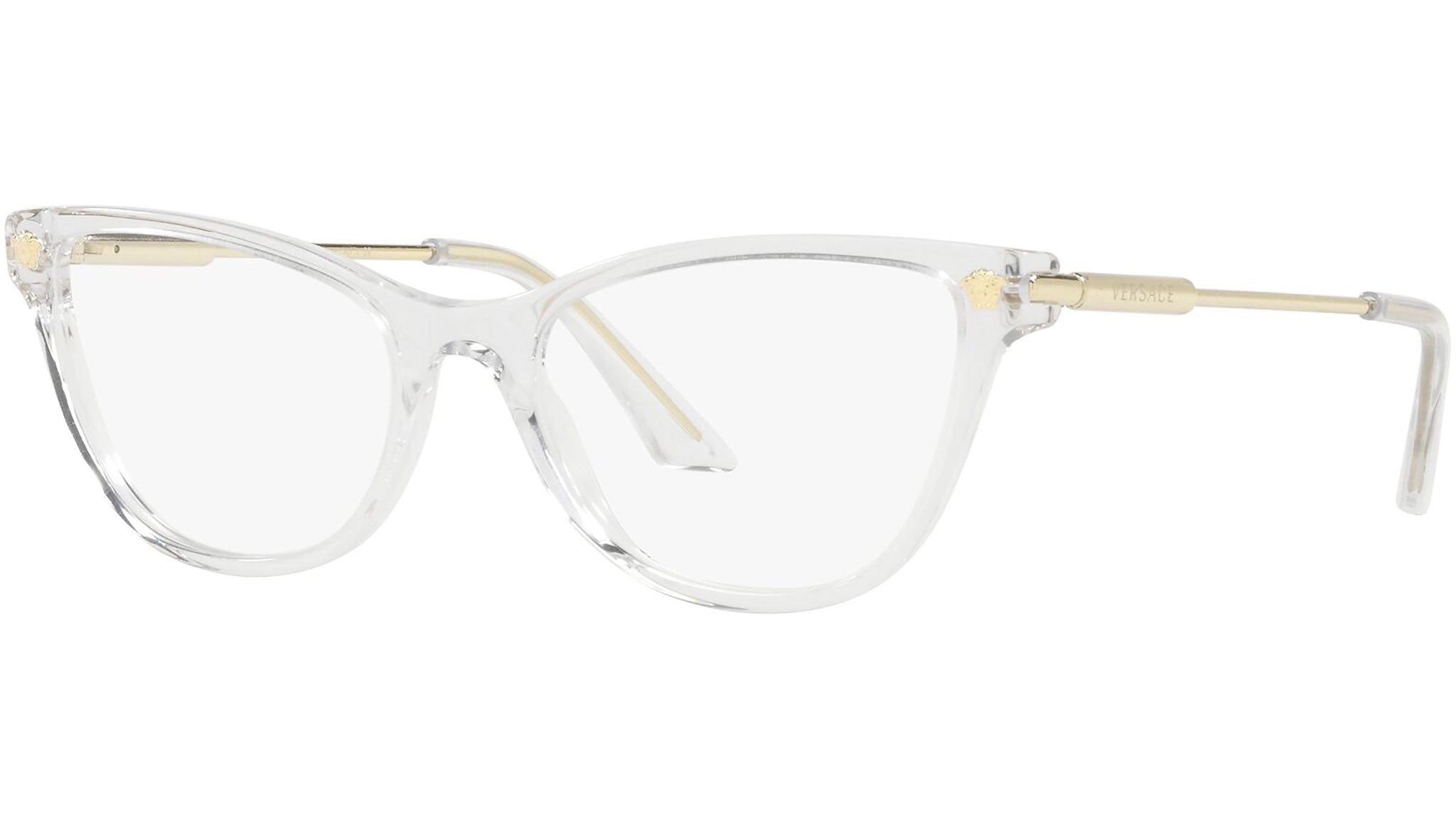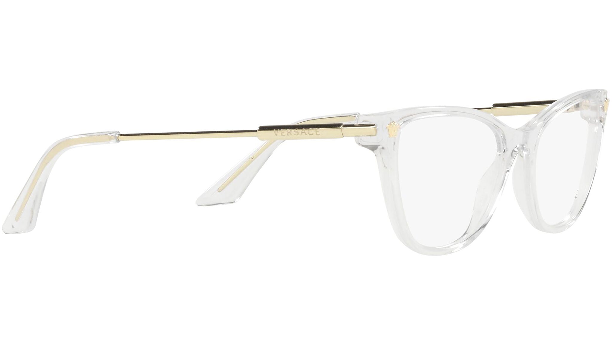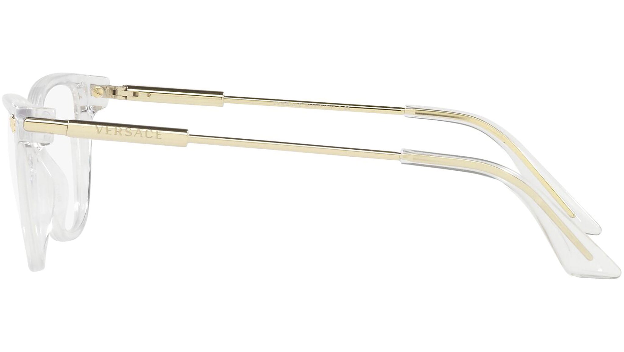 Versace eyeglasses model VE3309 color variant 148 crystal. Dedicated to those who want a contemporary, sexy, sophisticated style with a strong personality, Versace is one of the most iconic and famous high fashion and luxury houses in the world. The eyewear collection combines technical innovation and the essential style of the brand, and is strongly characterized by the decorative elements that have always distinguished the Maison.