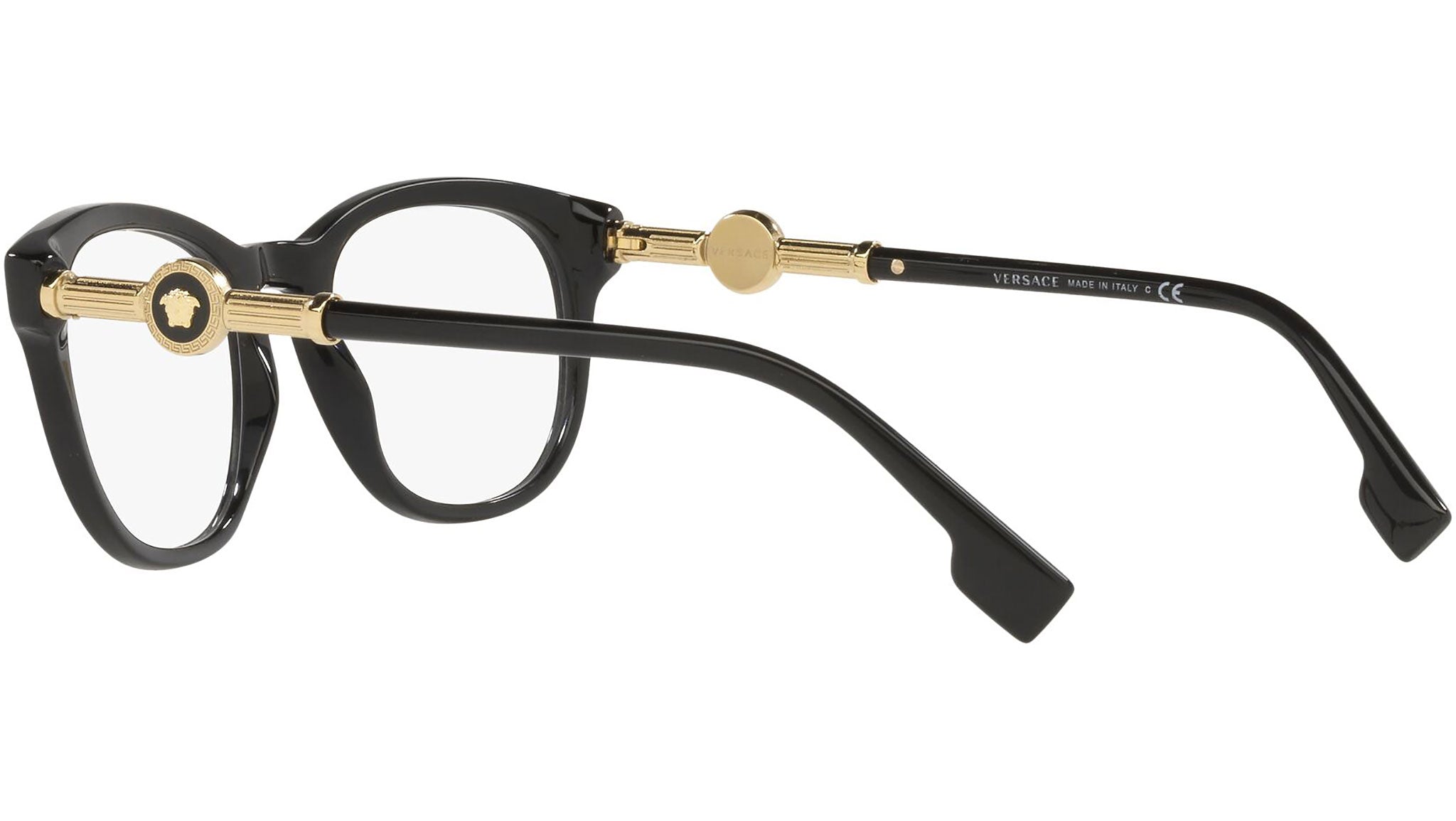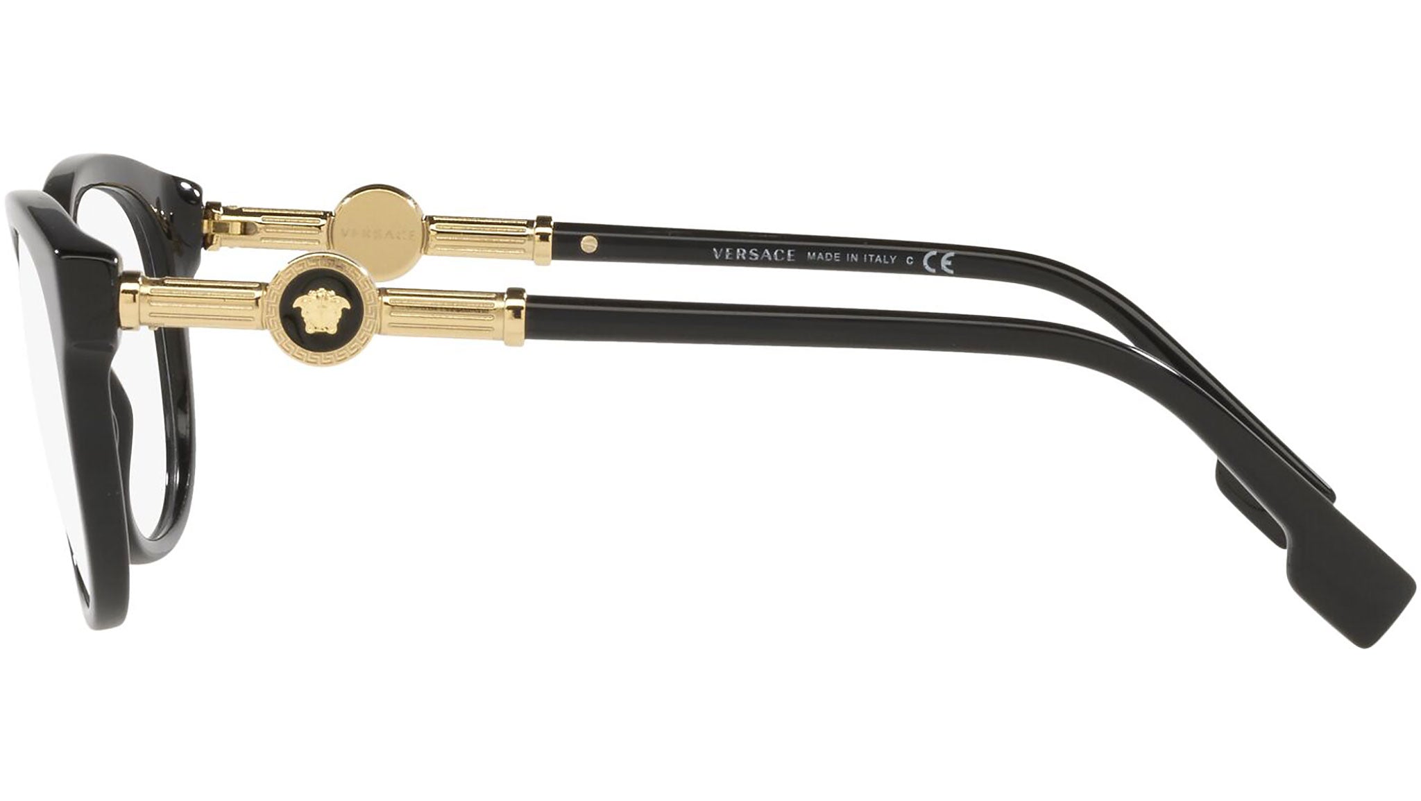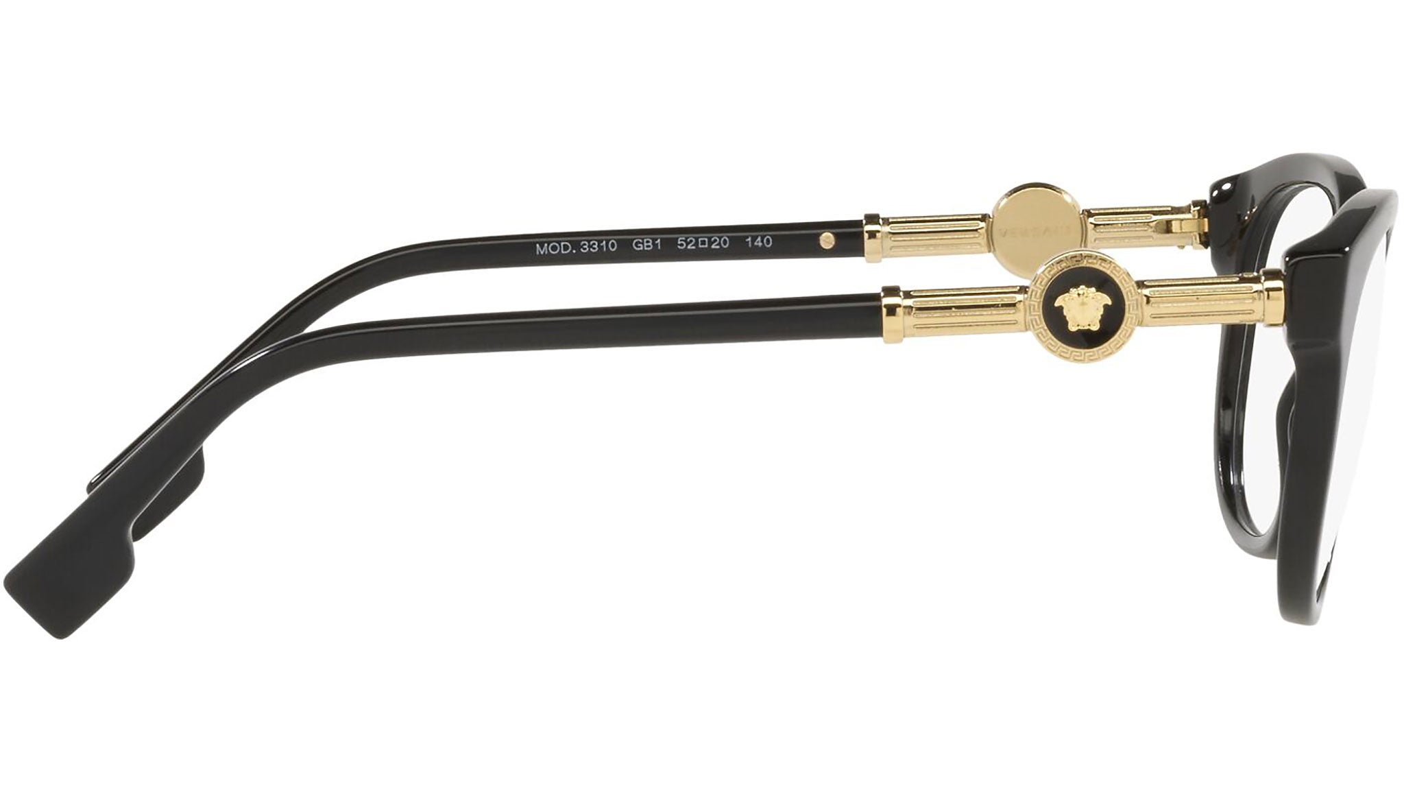 Versace eyeglasses model VE3310 color variant GB1 black. Dedicated to those who want a contemporary, sexy, sophisticated style with a strong personality, Versace is one of the most iconic and famous high fashion and luxury houses in the world. The eyewear collection combines technical innovation and the essential style of the brand, and is strongly characterized by the decorative elements that have always distinguished the Maison.