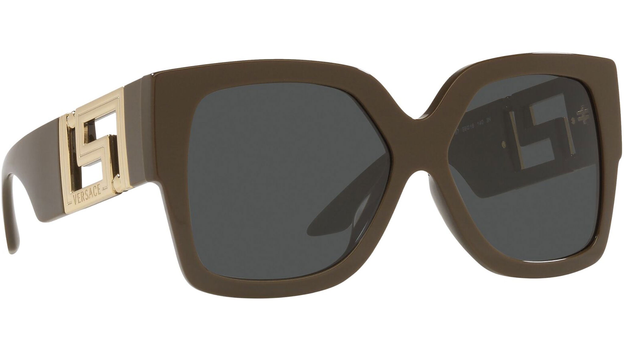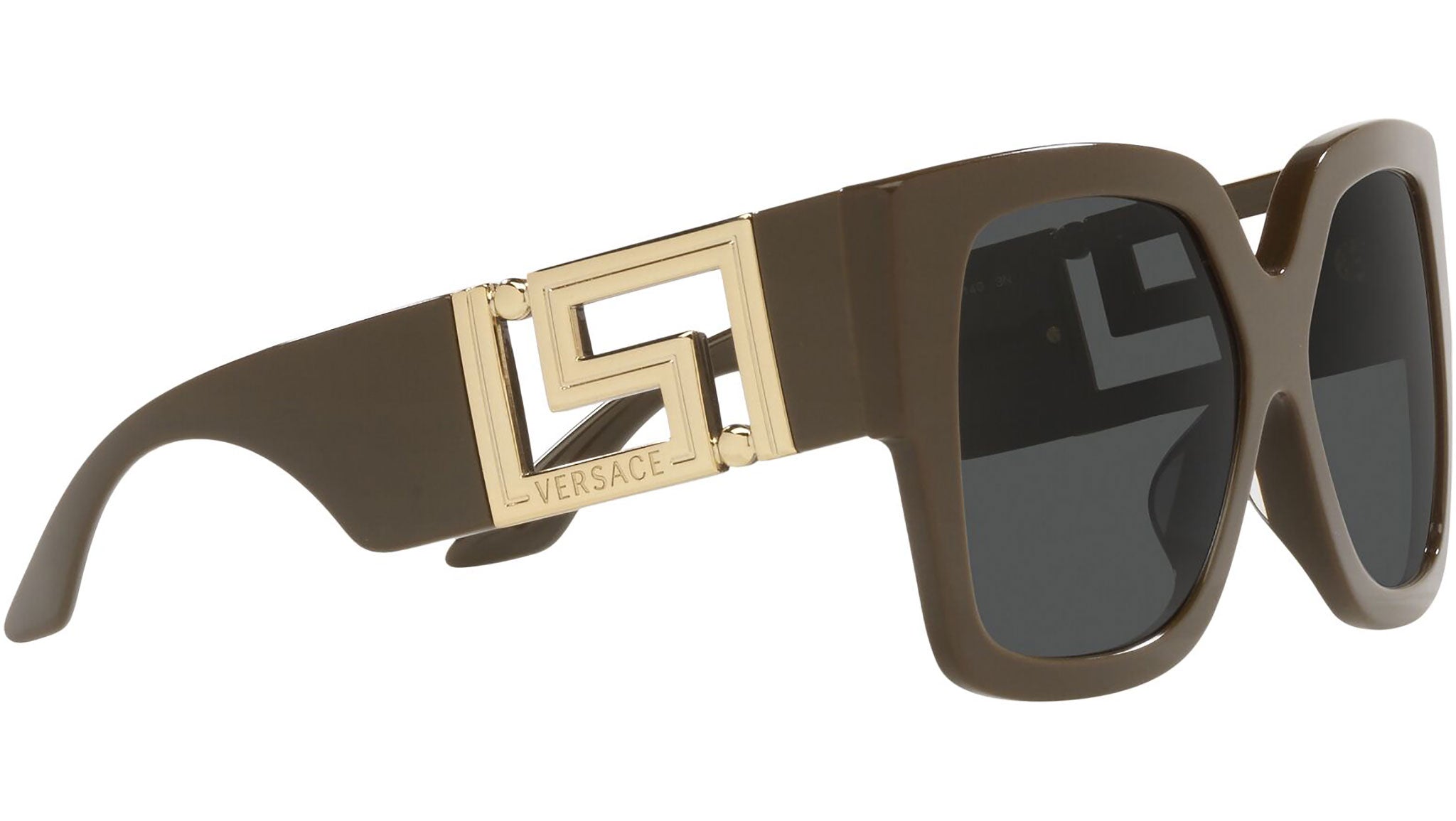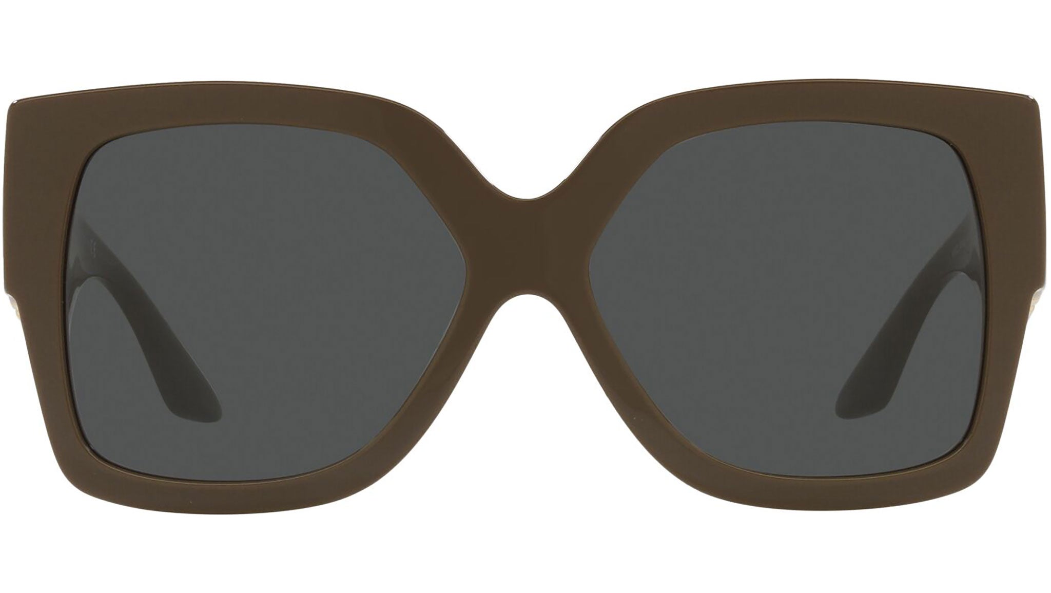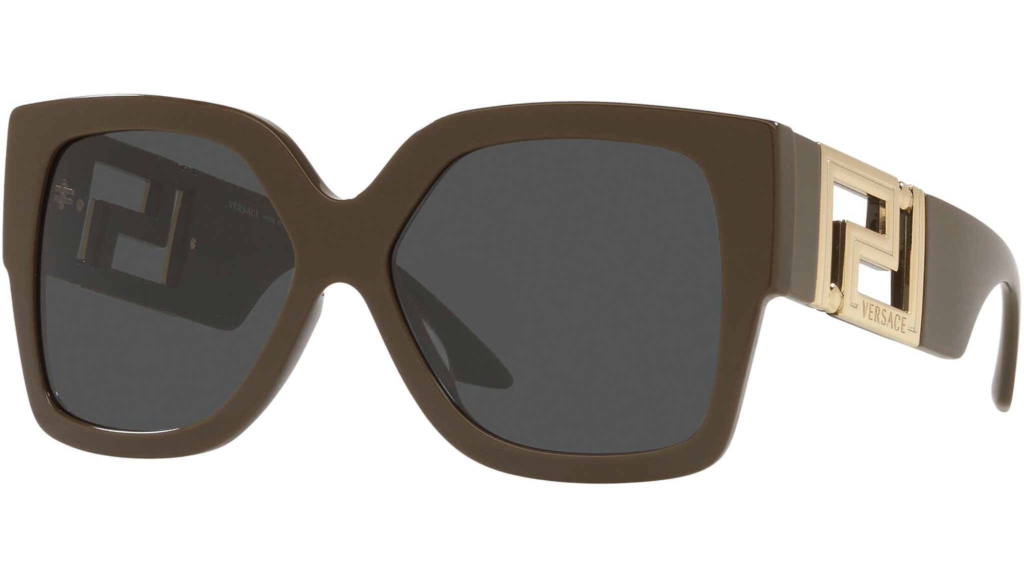 Versace sunglasses model VE4402 color code 535087 brown and green with dark gray lenses. Dedicated to those who want a contemporary, sexy, sophisticated style with a strong personality, Versace is one of the most iconic and famous high fashion and luxury houses in the world. The sunglasses collection combines technical innovation and the essential style of the brand, and is strongly characterized by the decorative elements that have always distinguished the Maison.