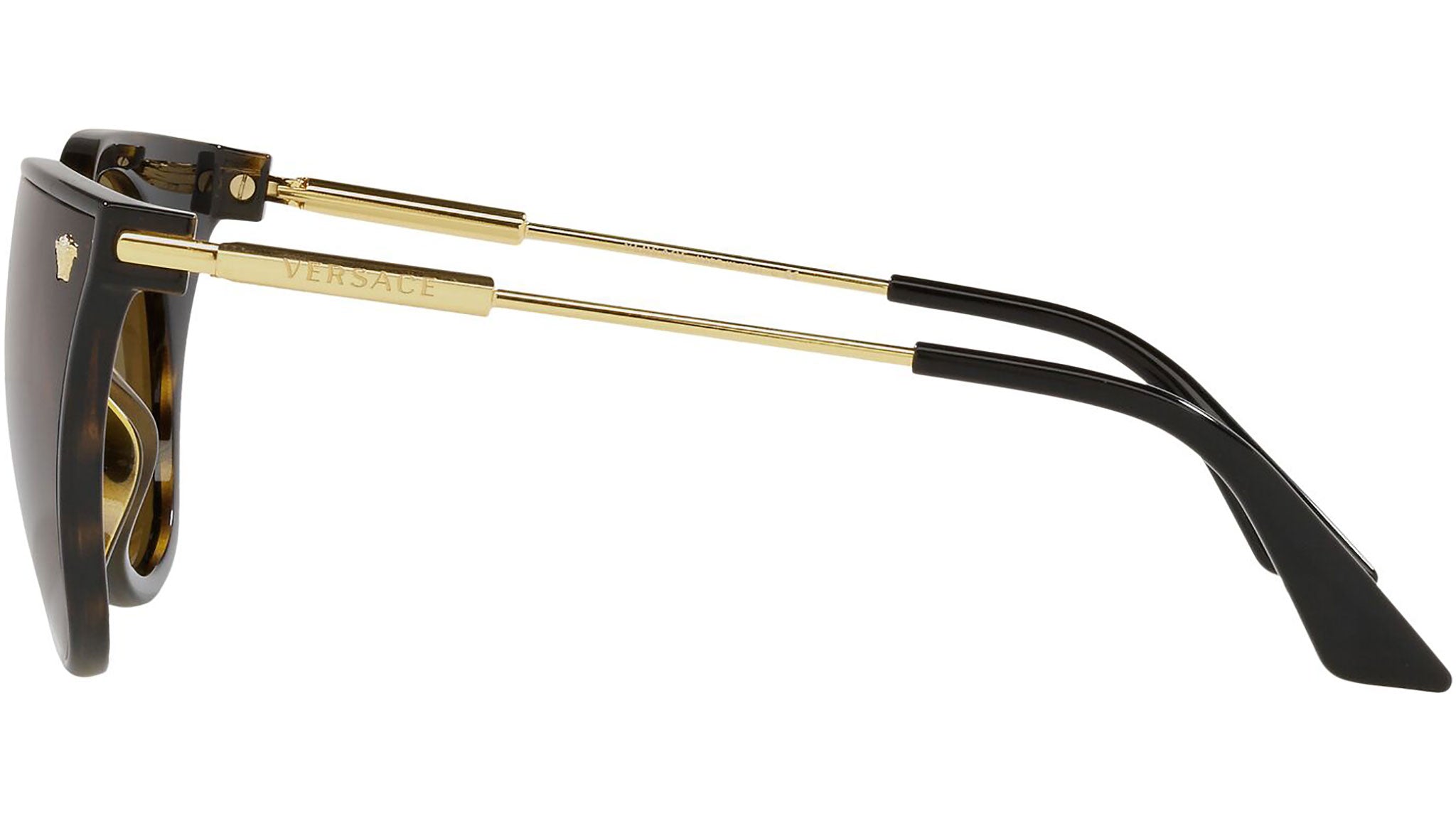 Versace sunglasses model VE4410 color code 108/73 havana with dark brown lenses. Dedicated to those who want a contemporary, sexy, sophisticated style with a strong personality, Versace is one of the most iconic and famous high fashion and luxury houses in the world. The sunglasses collection combines technical innovation and the essential style of the brand, and is strongly characterized by the decorative elements that have always distinguished the Maison.
