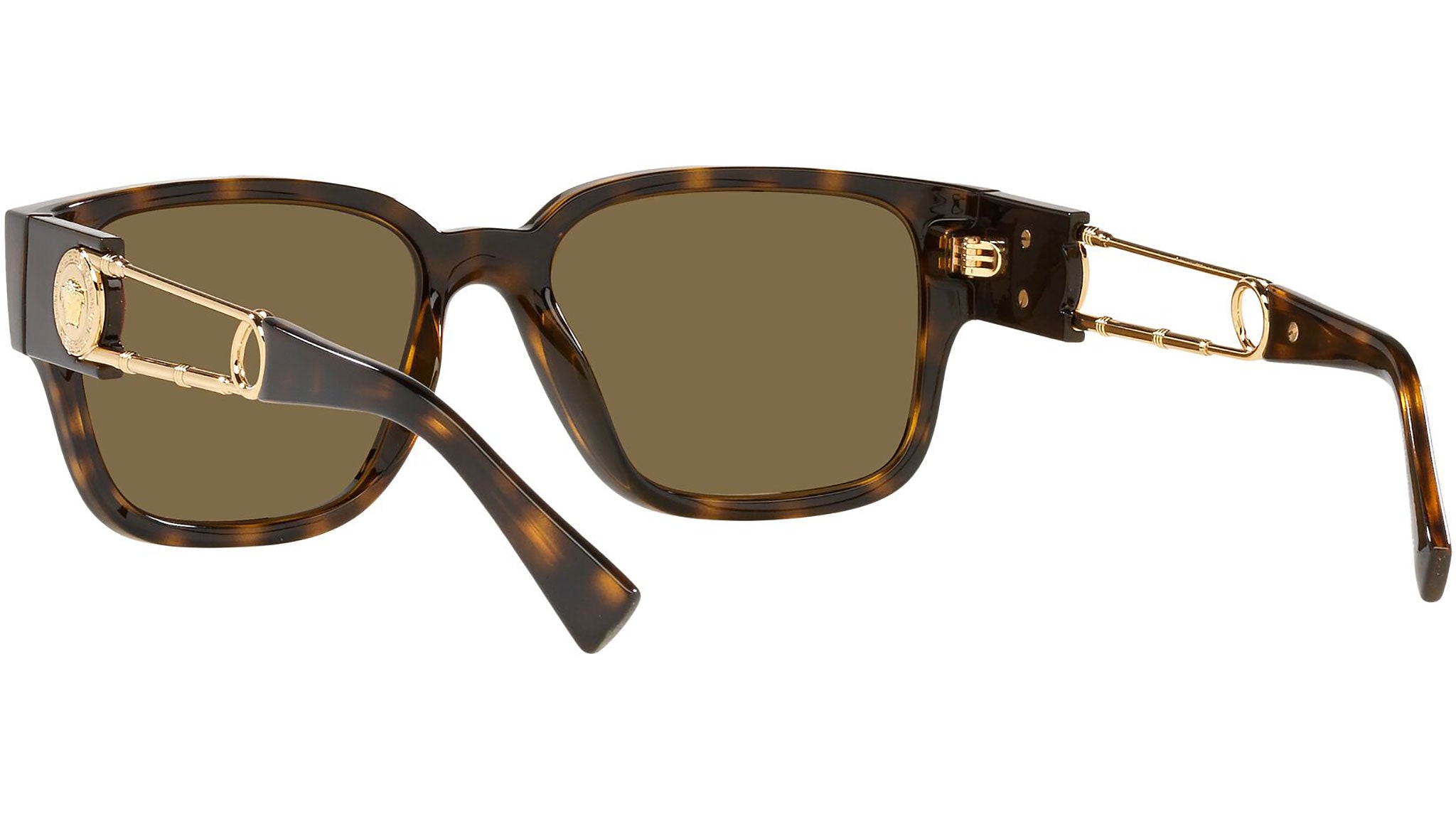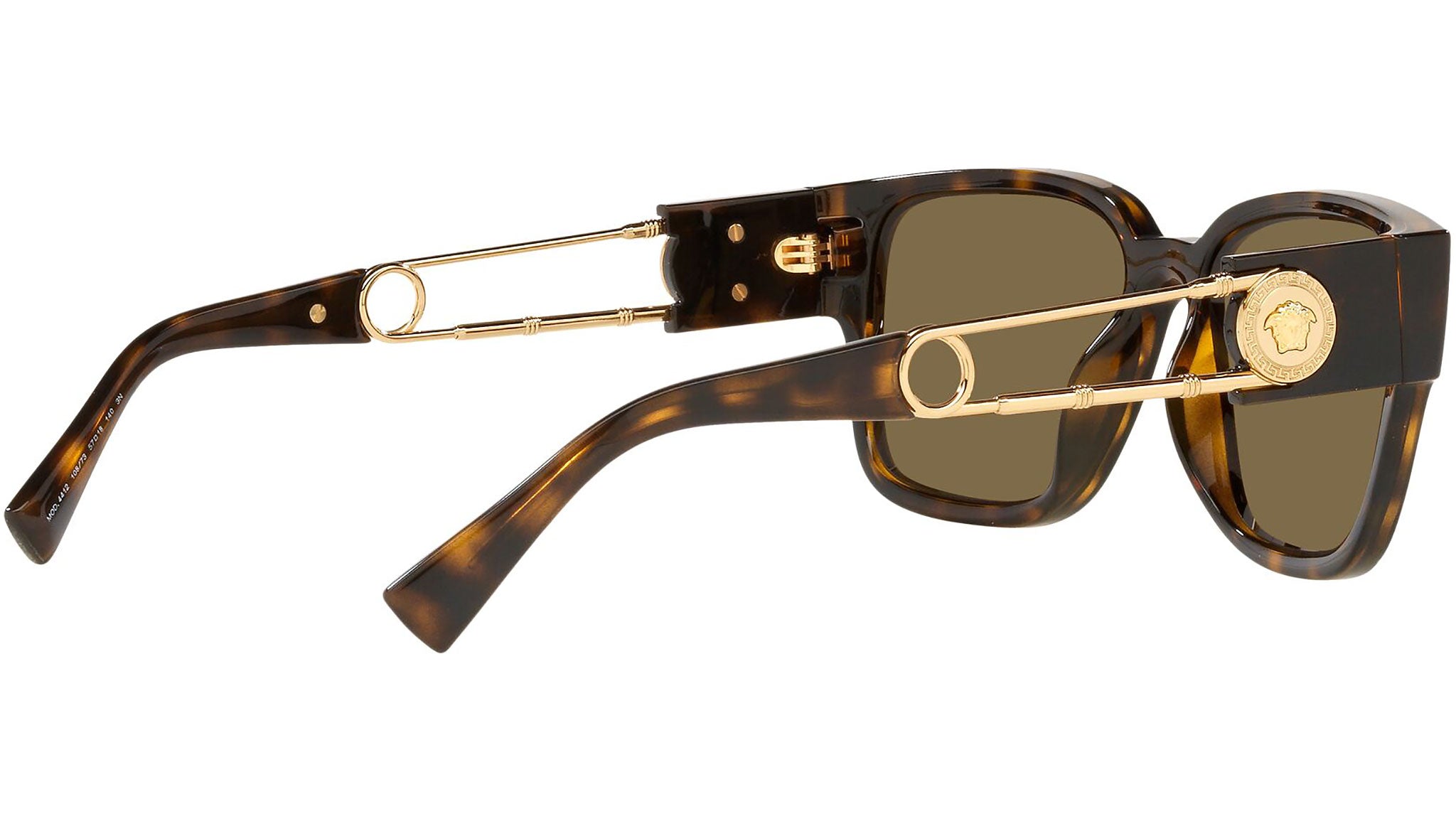 Versace sunglasses model VE4412 color code 108/73 havana with dark brown lenses. Dedicated to those who want a contemporary, sexy, sophisticated style with a strong personality, Versace is one of the most iconic and famous high fashion and luxury houses in the world. The sunglasses collection combines technical innovation and the essential style of the brand, and is strongly characterized by the decorative elements that have always distinguished the Maison.