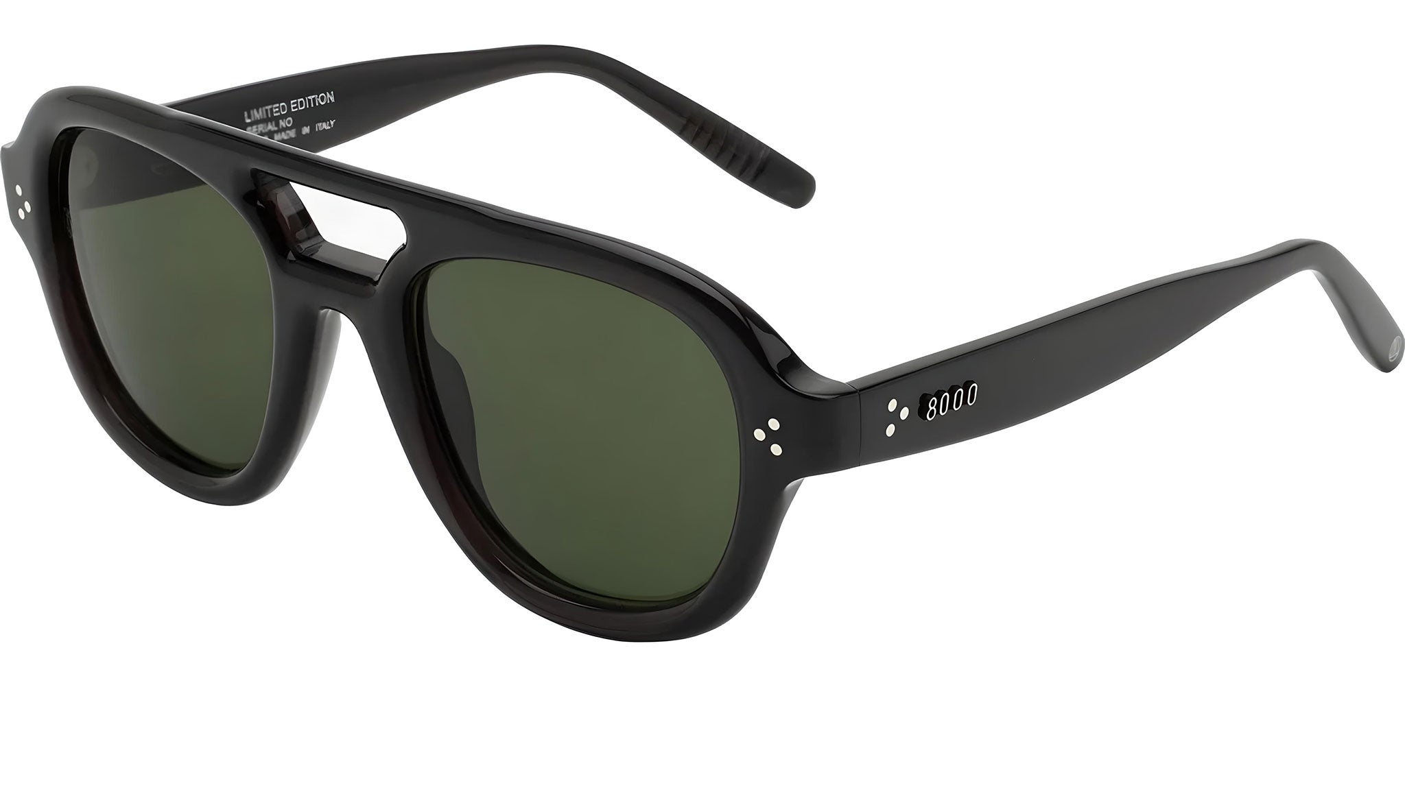 Creato per il marchio italo-americano di alta gamma Ottomila, Floyd è un paio di occhiali che fa una dichiarazione di stile, reinterpretando in chiave moderna la silhouette classica degli occhiali aviator. Il modello presenta un doppio ponte nasale e una spessa montatura in acetato scolpita con cura per ottenere un design morbido e curvato. Le finiture di lusso tipiche di Ottomila includono l’acetato lucidato a mano, che ne esalta la materialità, e il logo in metallo incastonato nelle punte delle aste. Questa versione è realizzata in acetato nero lucido con lenti verde bottiglia. Disponibile nella misura R, con larghezza lente di 53 mm e lunghezza delle aste di 145 mm. Codice prodotto: 51Y.