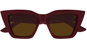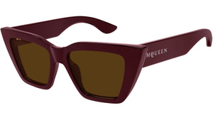 AM0024S 002 sunglasses by Alexander McQueen with crystal and shiny havana frame and mirror gradient brown lenses. Alexander McQueen Eyewear eyewear styles represent a juxtaposition between contrasting elements: femininity and masculinity, fragility and strength, tradition and modernity. An innovative and uncompromising identity of the fashion house.
