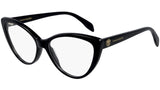 Occhiali da vista Alexander McQueen modello AM0287O, variante colore 001 nero lucido con astine color nero lucido. Sinonimo di fashion irriverente e senza inibizioni, i modelli Alexander McQueen Eyewear rappresentano la pura giustapposizione tra elementi contrastanti, declinata in modelli da passerella dal segno unico, stimolante e moderno.