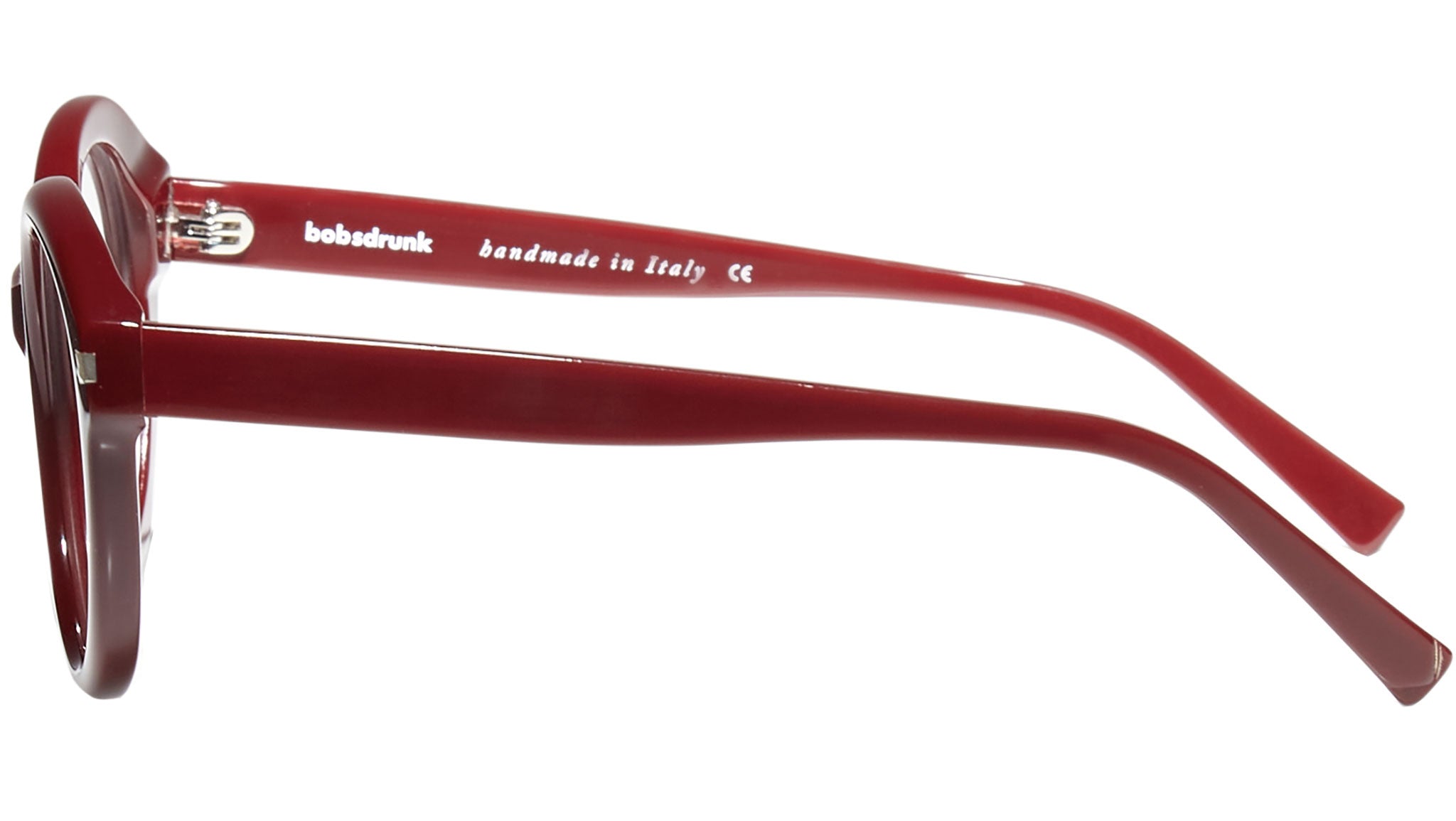 Montatura da vista Bobsdrunk Amy codice colore 143 in tonalità bordeaux solido. Prodotti senza tempo e forme audaci convivono in questa originale collezione Eyewear. Le linee sono disegnate con maestria, per creare un effetto di audace leggerezza. Ogni paio di occhiali Bobsdrunk è caratterizzato da un dettaglio emblematico, mostrato sulla parte anteriore e sulla punta delle aste, che evidenzia il valore del marchio. Rappresenta in un iconico simbolo l'unione della lettera iniziale e finale di Bobsdrunk. La scelta accurata dei materiali, la selezione dell'artigianalità e una costante ricerca cromatica sono le prerogative di ogni creazione di Bobsdrunk.