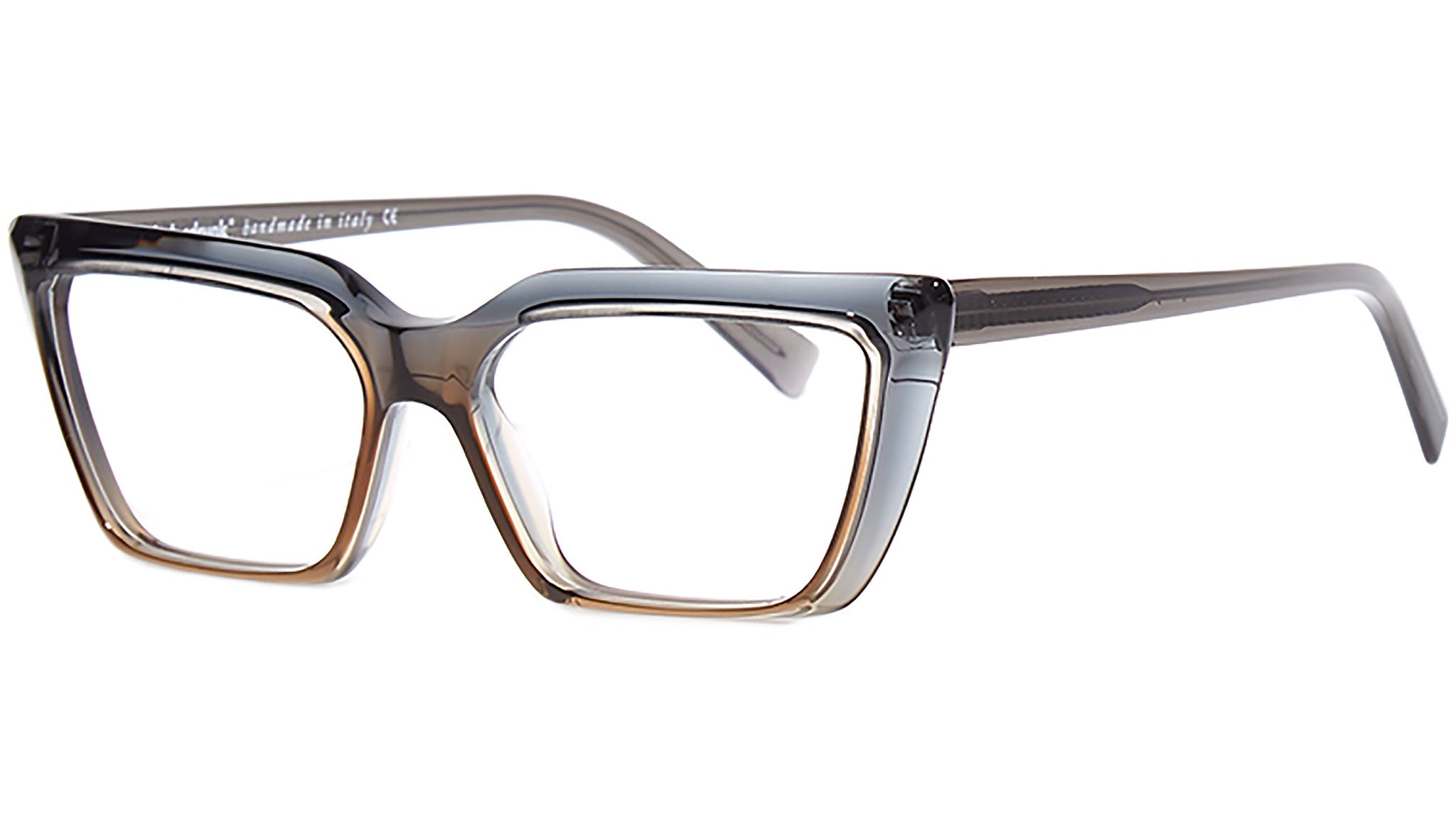Acetate frame in grey and black. lenses with anti-glare filters.