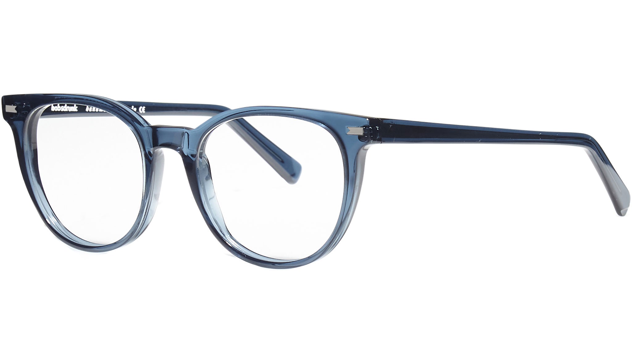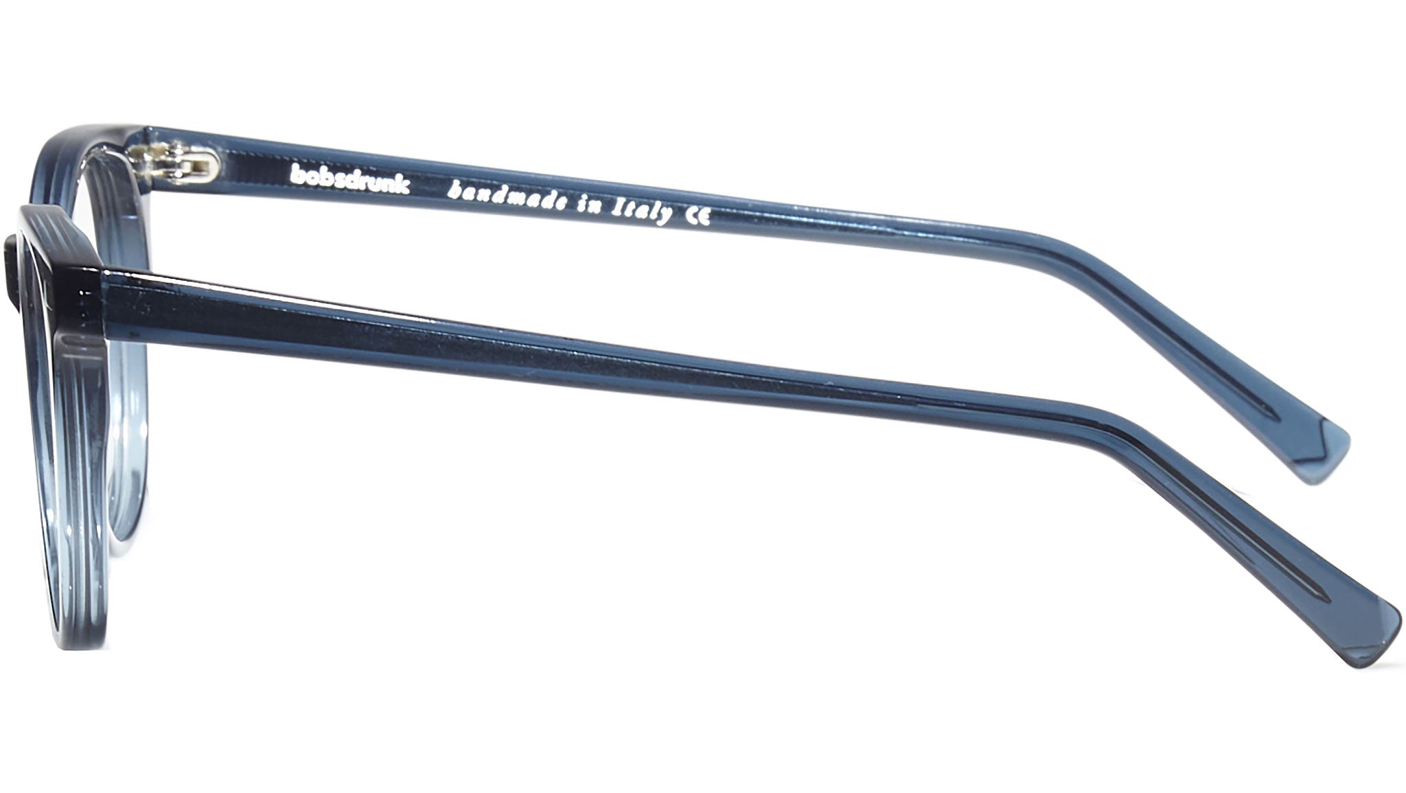 Montatura da vista Bobsdrunk Wilson codice colore 132 in tonalità blu inchiostro trasparente. Prodotti senza tempo e forme audaci convivono in questa originale collezione Eyewear. Le linee sono disegnate con maestria, per creare un effetto di audace leggerezza. Ogni paio di occhiali Bobsdrunk è caratterizzato da un dettaglio emblematico, mostrato sulla parte anteriore e sulla punta delle aste, che evidenzia il valore del marchio. Rappresenta in un iconico simbolo l'unione della lettera iniziale e finale di Bobsdrunk. La scelta accurata dei materiali, la selezione dell'artigianalità e una costante ricerca cromatica sono le prerogative di ogni creazione di Bobsdrunk.
