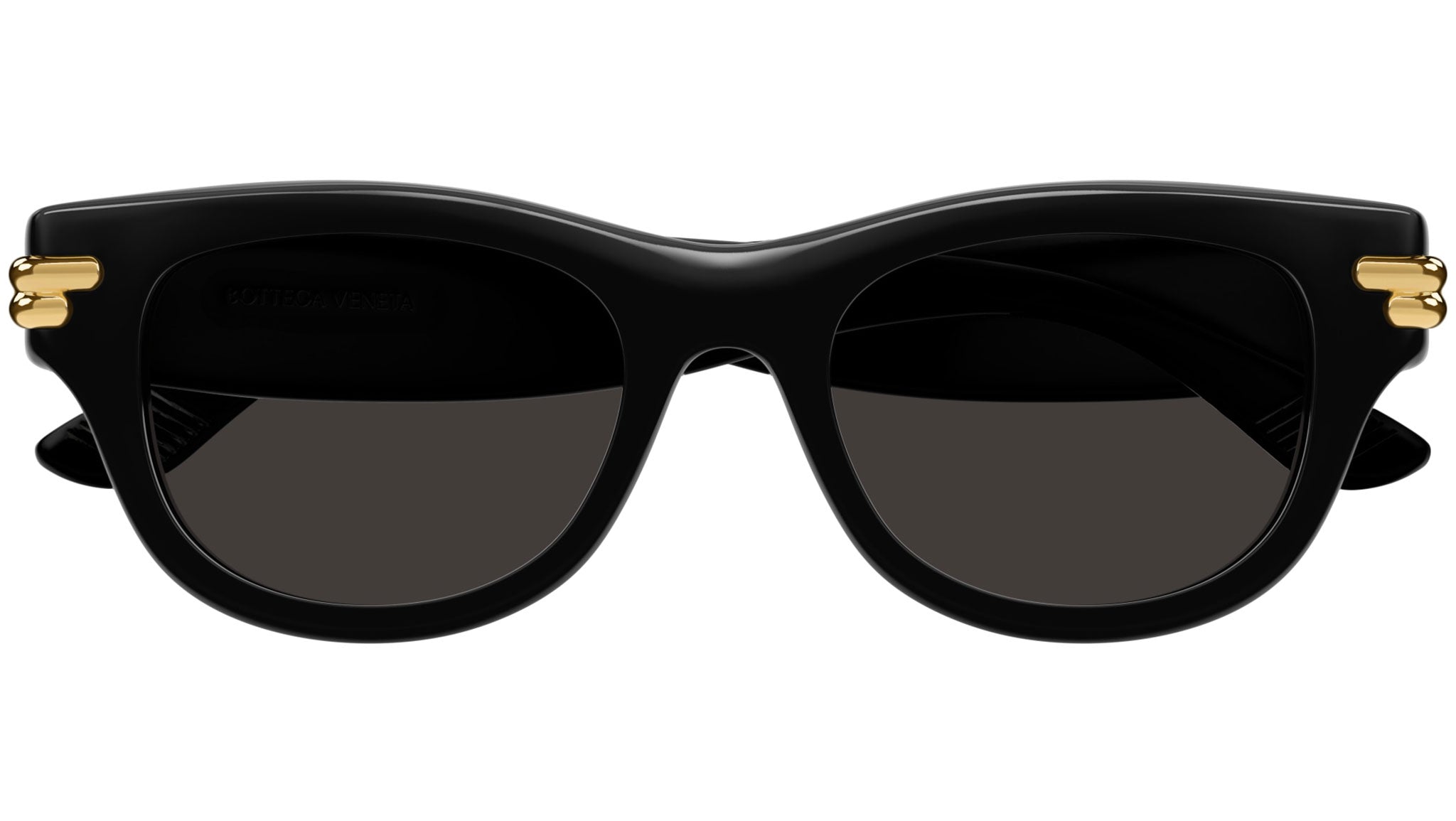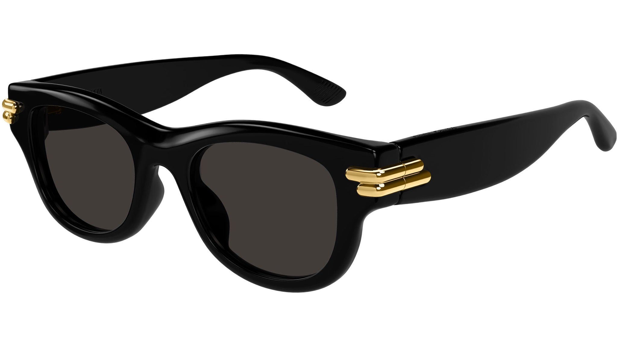 Occhiali da sole Bottega Veneta modello BV1323SK in acetato riciclato forma rettangolare codice colore 001 nero lucido tinta unita con lenti color grigio tinta unita. Rivenditore autorizzato Bottega Veneta online. Gli occhiali vengono consegnati con custodia e accessori originali e sono coperti dalla garanzia ufficiale di 12 mesi del produttore.