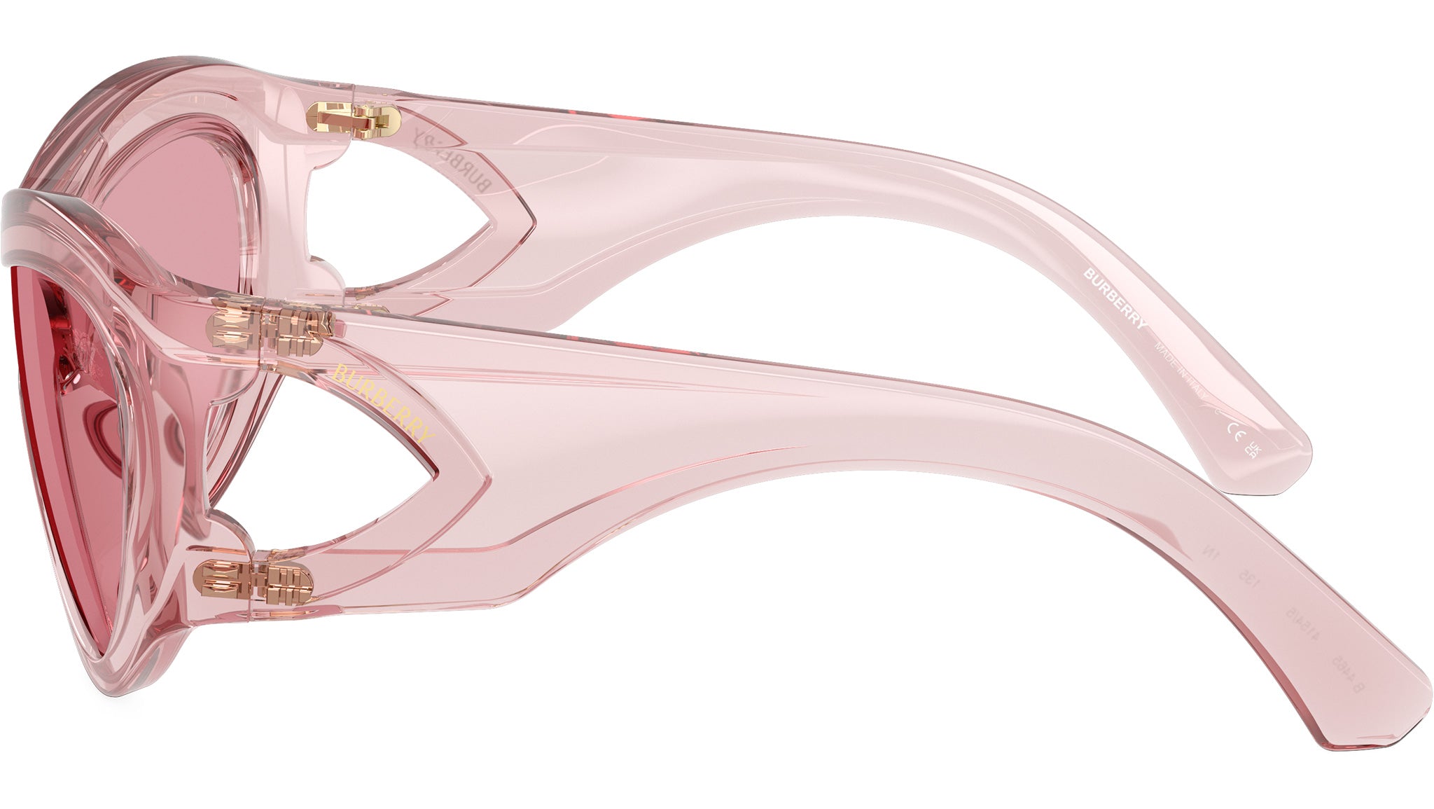 Occhiali da sole Burberry unisex modello BE4465 4154/5 con montatura full rim in iniettato rosa e lenti in bio poliammide rosa scuro. Vestibilità a ponte alto. Fitting consigliato: L. Linea: Runway. Codice modello: 0BE4465. Codice colore: 4154/5. Rivenditore autorizzato online Burberry. Gli occhiali includono la custodia e gli accessori originali e sono coperti da una garanzia globale di 12 mesi.