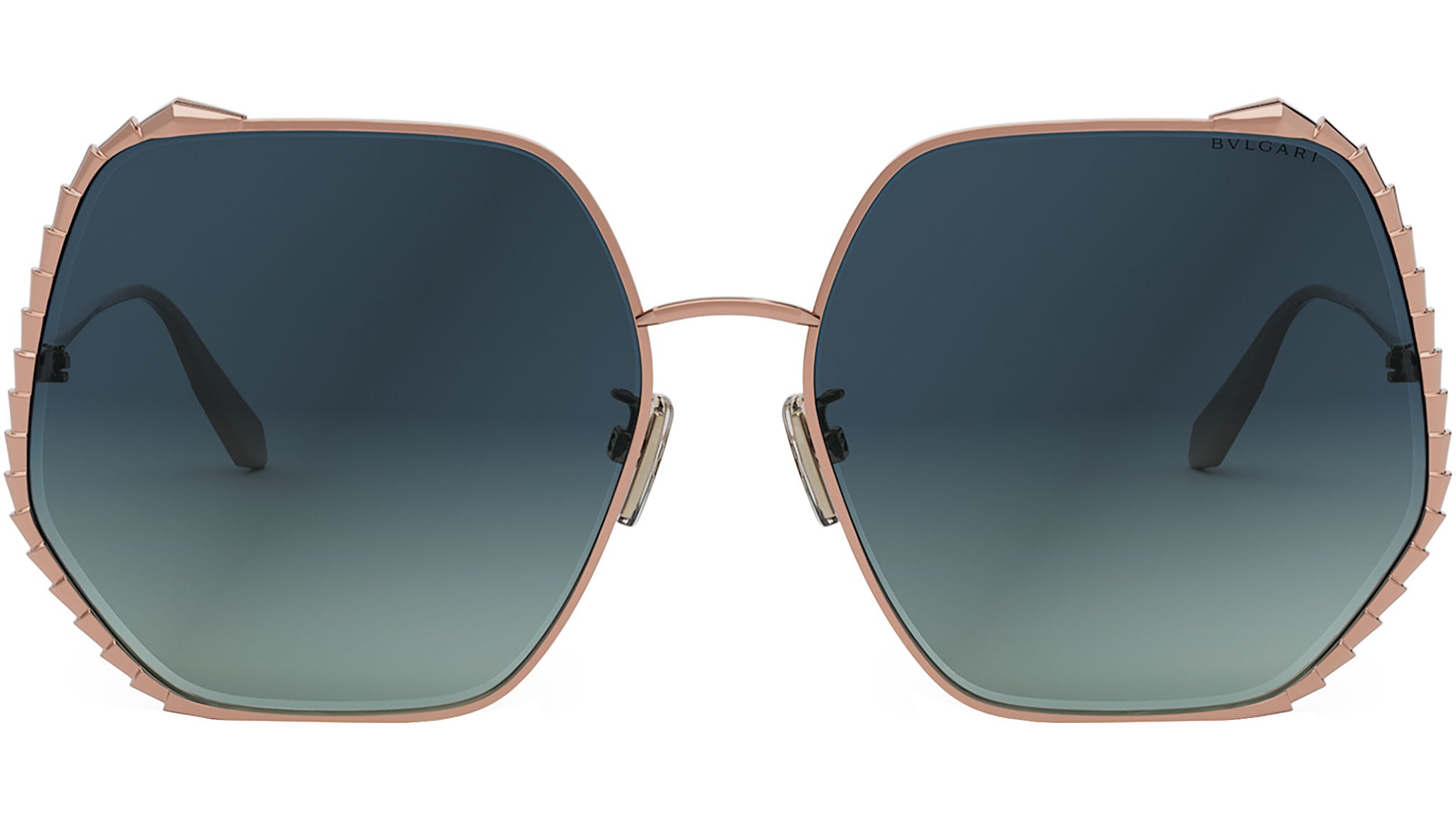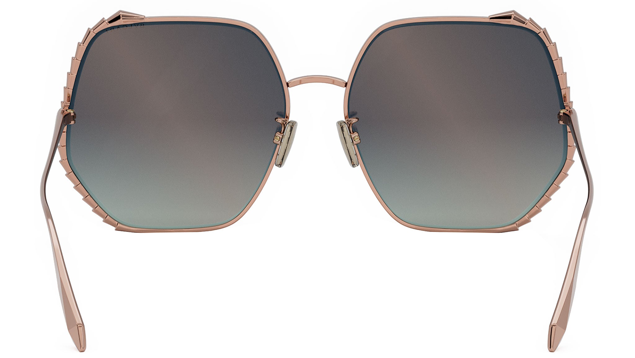 Occhiali da sole BVLGARI BV40004U linea Serpenti in metallo oro rosa colore 28P con lenti color grigio verde sfumato. Rivenditore autorizzato online BULGARI. Gli occhiali vengono consegnati con custodia e accessori originali.