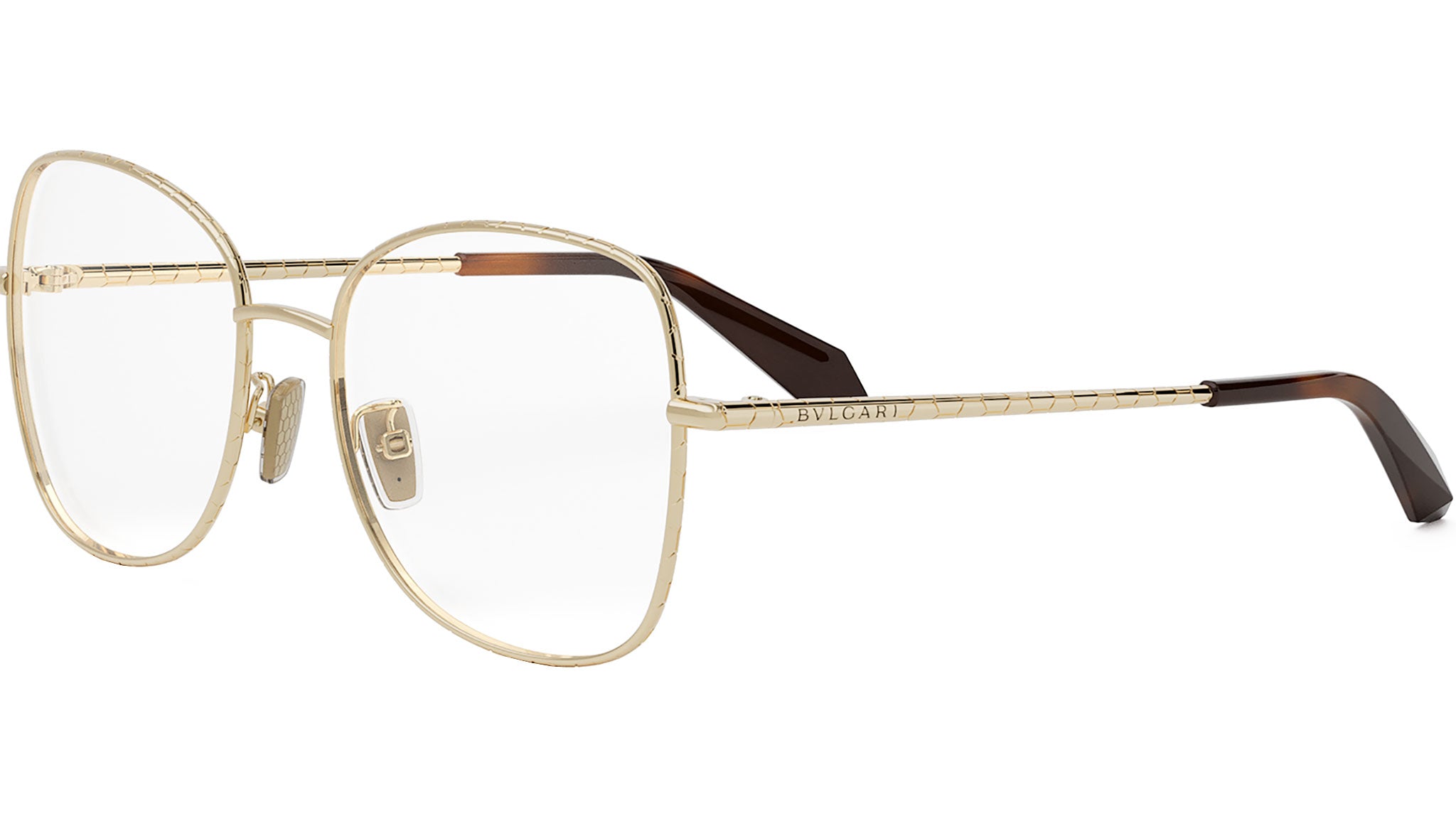 Occhiali da vista BVLGARI BV50004U linea Serpenti in metallo oro colore 033. Motivo a squame di serpente sulla montatura in metallo, con frontale di forma rettangolare. Rivenditore autorizzato online BULGARI. Gli occhiali vengono consegnati con custodia e accessori originali.