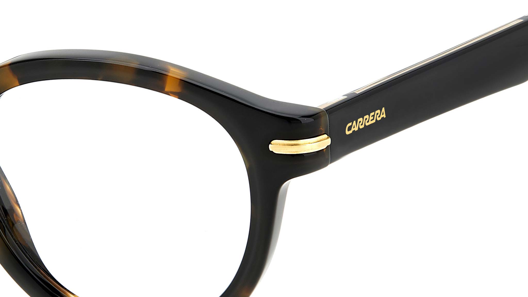 Occhiali da vista Carrera modello 313 colore 086 havana. Giocano sul contrasto tra allure vintage e un carattere deciso questi occhiali da vista unisex Carrera. Combinano infatti una silhouette pantos a una costruzione in acetato dai volumi audaci. Da notare la placca in metallo con la “C” Carrera in rilievo, così come l’anima a vista sul lato interno delle aste a pinna. Il modello è declinato nelle tonalità classiche come nero e havana, anche con trattamento multistrato sul frontale, e sempre firmato dall’immancabile logo Carrera.
