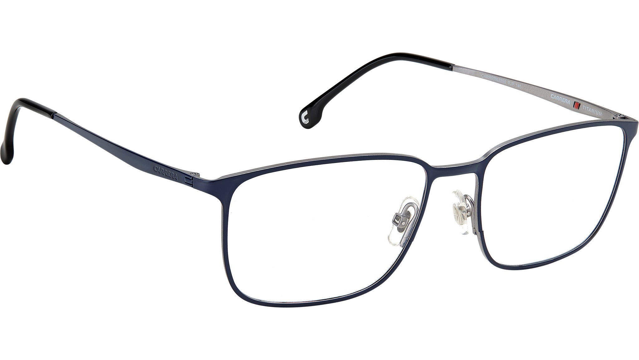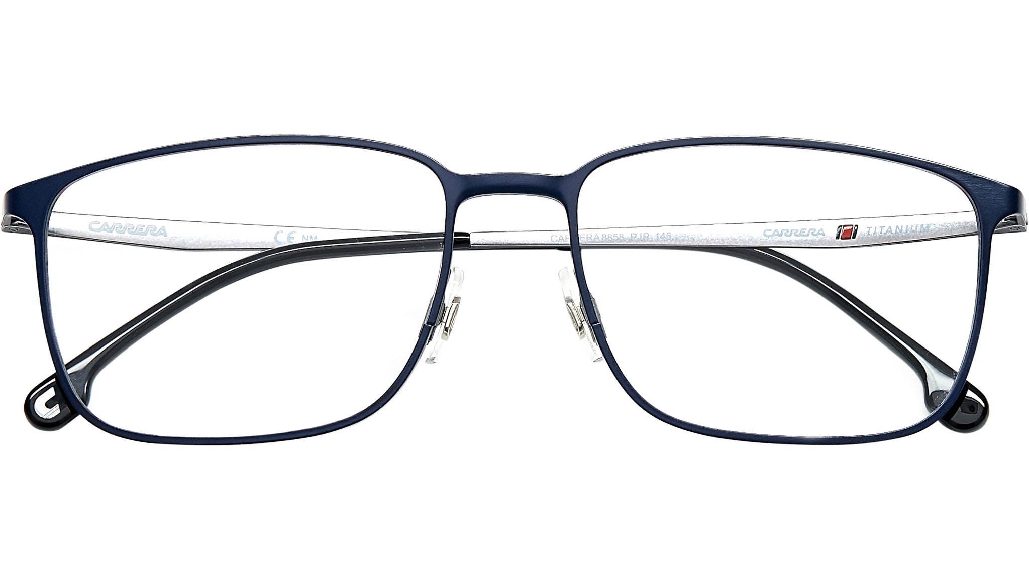 Occhiali da vista Carrera modello 8858 colore PJP blue. Con la loro sobria silhouette rettangolare e l’innovativa finitura opaca, questi occhiali da vista da uomo diventeranno il segno distintivo del tuo stile. Il sottile profilo squadrato è interamente realizzato in beta-titanio – incredibilmente leggero e durevole. Da notare il logo lettering dal fascino discreto, inciso lungo le tempie.