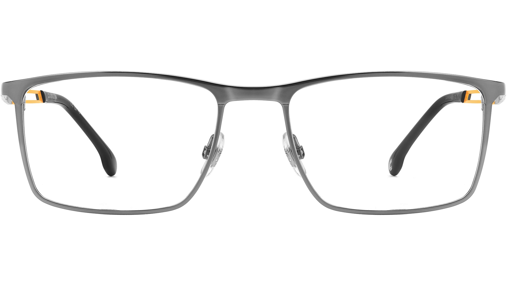 Occhiali da vista Carrera modello 8898 colore 7ZL matte dark ruthenium orange. Ancora una volta Carrera riscrive le regole e trasforma i più essenziali occhiali da vista in un accessorio dalla personalità dinamica, tecnica e grintosa. Ecco allora il frontale con naselli, realizzato in metallo, le cui linee sottili e minimali accentuano il comfort incomparabile. Inconfondibili le aste: l’apertura conferisce leggerezza e la sua colorazione a contrasto è abbinata al logo Carrera.