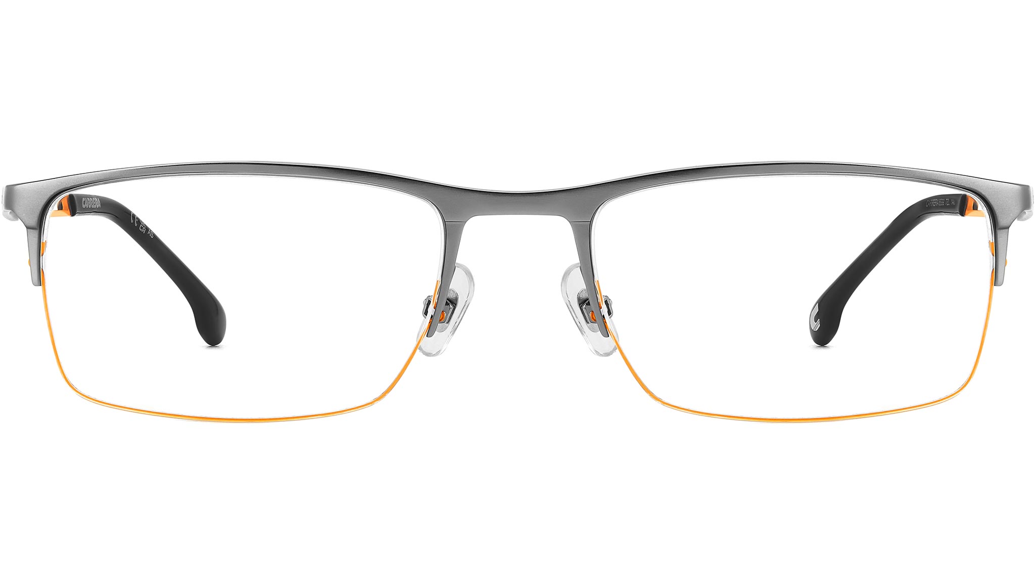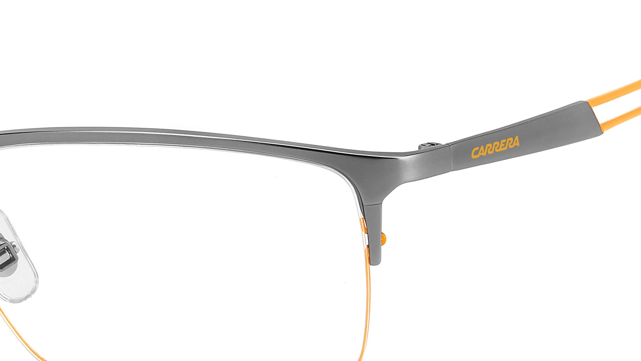 Occhiali da vista Carrera modello 8899 colore 7ZL matte dark ruthenium orange. Carrera conferma il suo ruolo di primo piano con questi occhiali da vista ispirati allo sportswear. Le aste sono studiate per offrire prestazioni elevate, alleggerite dall’apertura con colorazione a contrasto e completate da terminali in acetato. Le lenti rettangolari sono ancorate ad una struttura in metallo e un sottile filo di nylor, quest’ultimo proposto anche in versione colorata coordinata alle aste. Il logo Carrera firma questo accessorio dall’animo pratico e dallo stile inconfondibile.