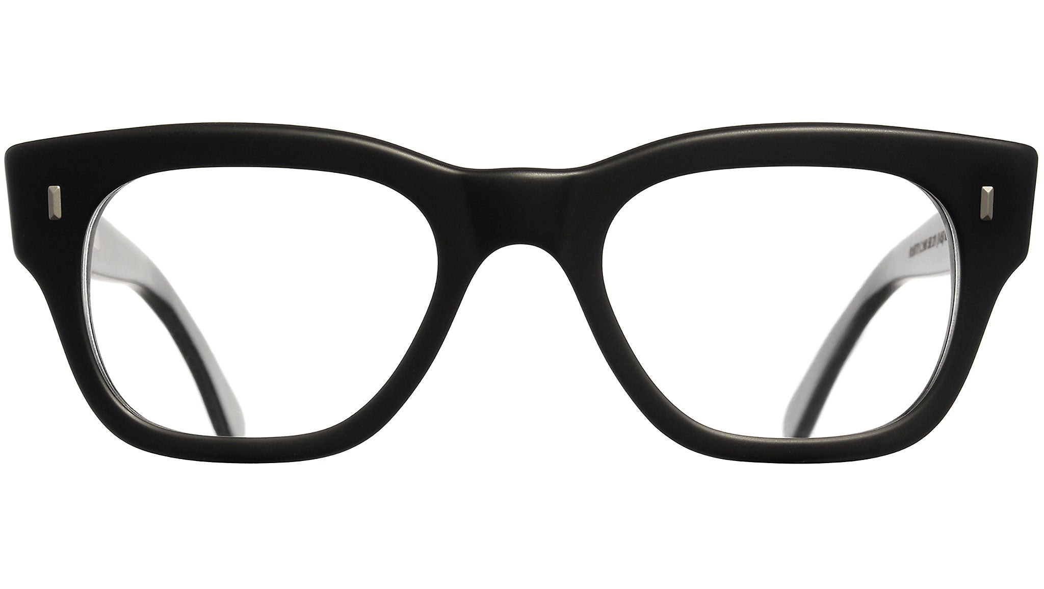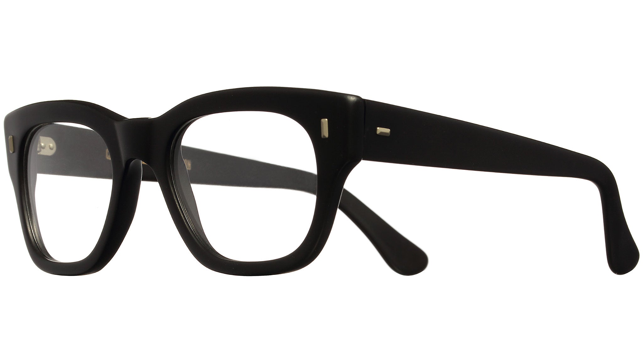An iconic square optical frame featuring a heavy brow and tapered temple.