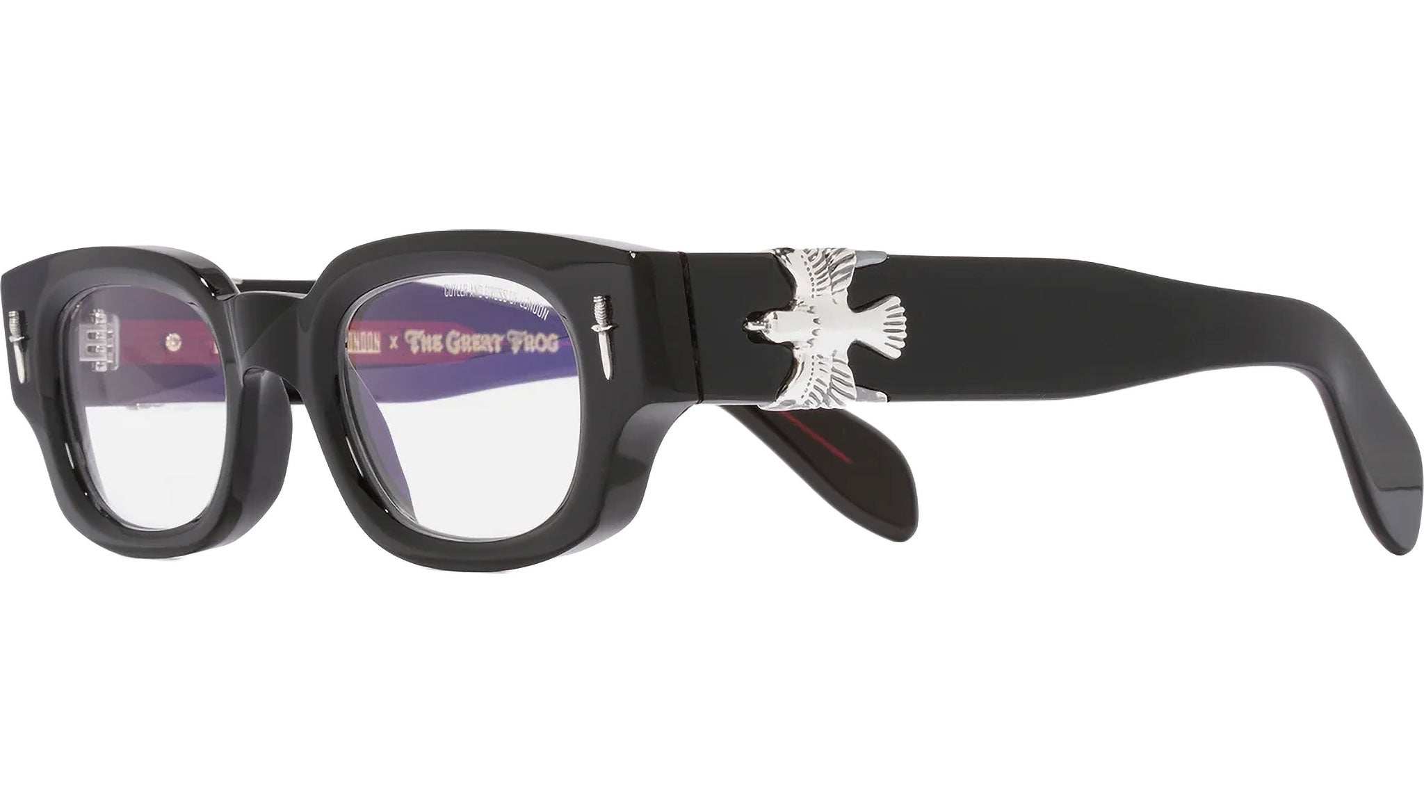 Occhiali da vista Cutler and Gross GFOP The Great Frog 004 colore 01 Black in acetato. Fusi a mano in argento sterling, i pugnali e i perni delle aste rendono il design accattivante. È un occhiale realizzato a mano con una silhouette da motociclista old-school e scolpito con una fresatura a risparmio di peso.